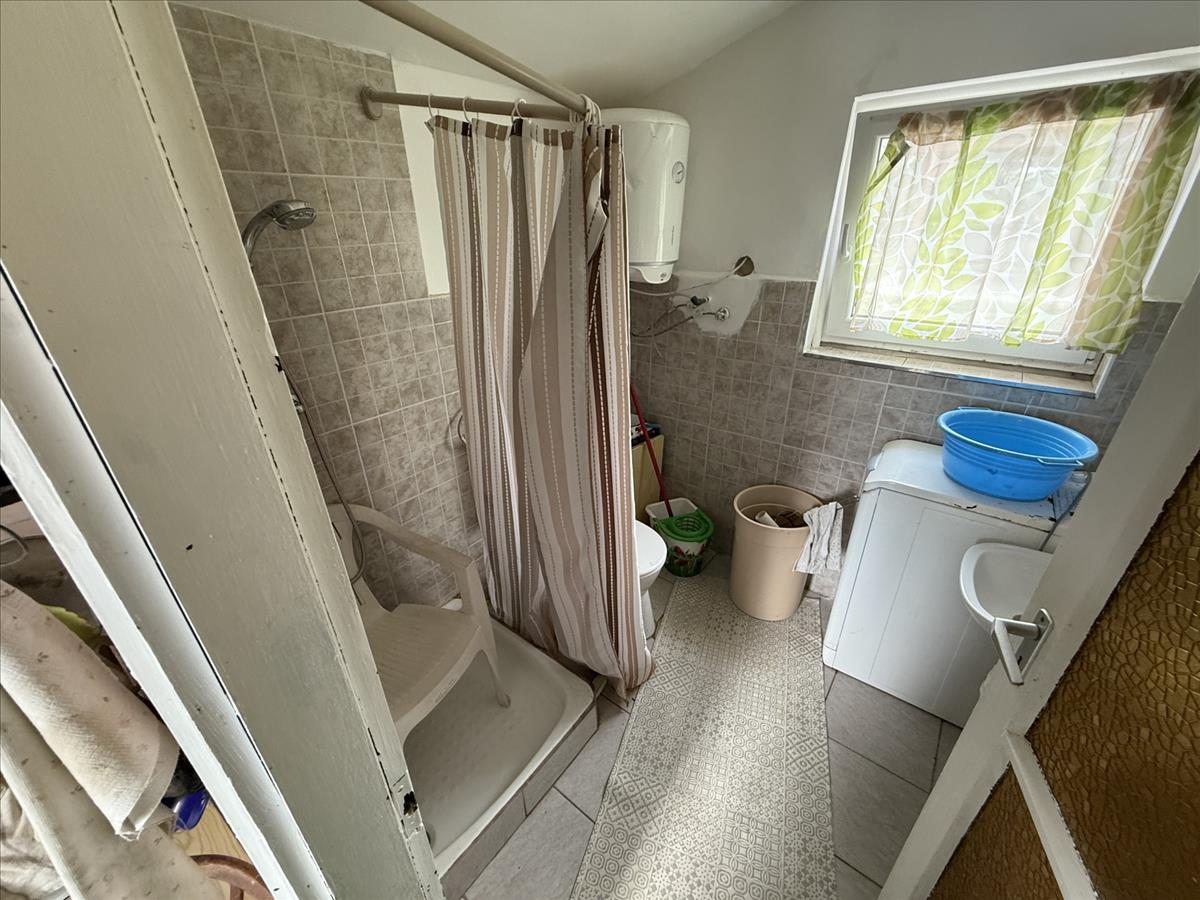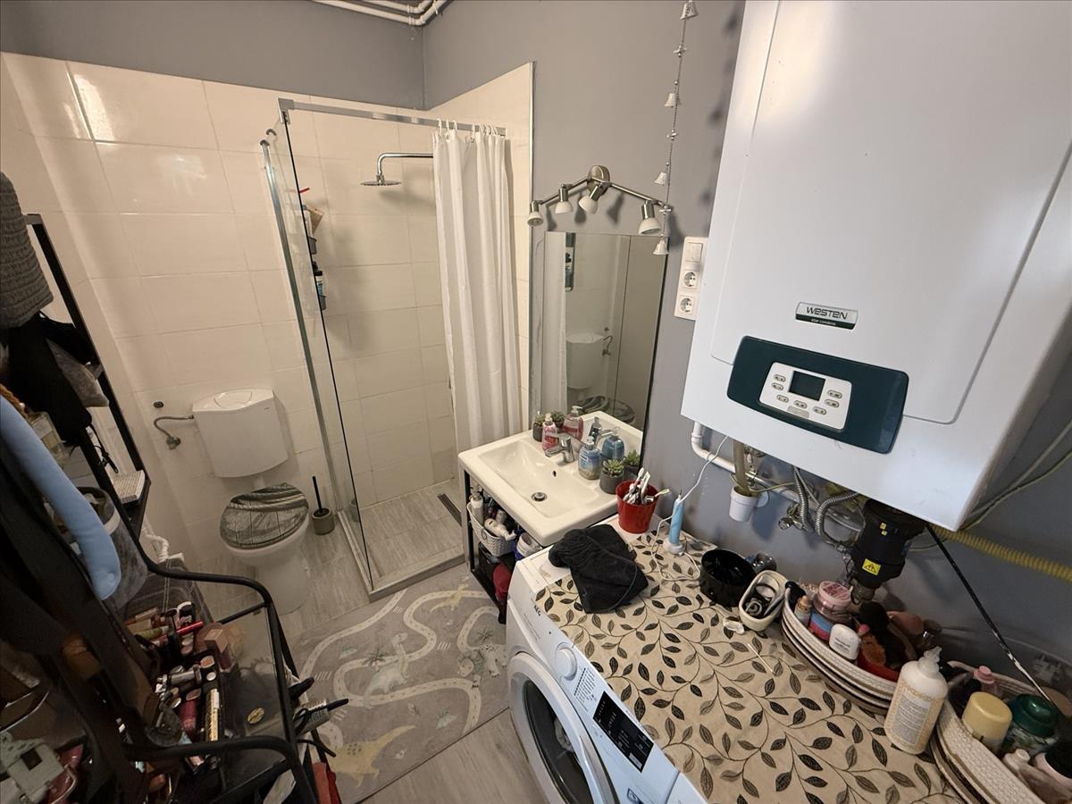 A kisebb, 40 m²-es ház külön bejárattal rendelkezik, saját fürdőszobával, konyhával és egy szobával. Fűtése parapetes gázkazánról történik, klíma és villanybojler szintén rendelkezésre áll.