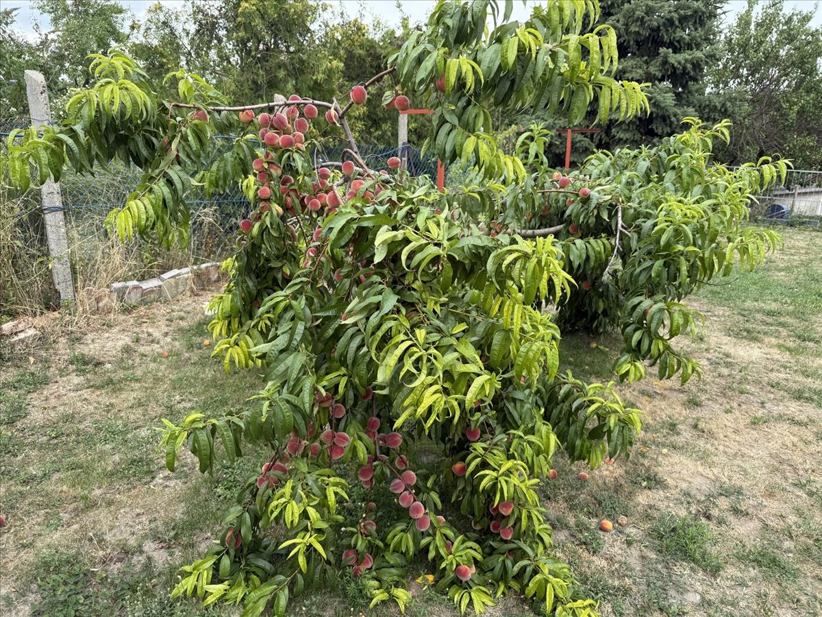 A gondosan karbantartott kertben gyümölcsfák – többek között alma, meggy, sárgabarack és őszibarack – biztosítják a friss termést, míg a veteményes és magaságyás a saját termesztés örömét kínálja.
