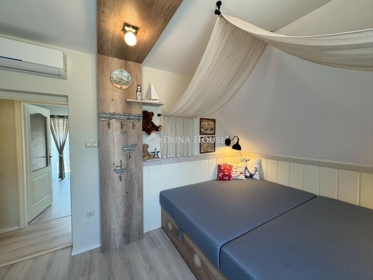 Igazi gyöngyszem, mely a teljes igényesség erejével készült! a kétszintes, nappali +2 szobás otthon 2 fürdőszobával, konyha-étkezővel rendelkezik. Lakberendező által stílusosan kialakított helyiségekben minden négyzetcentiméter kihasználásra került, így meglehetősen kényelmes akár 12 fő számára is.