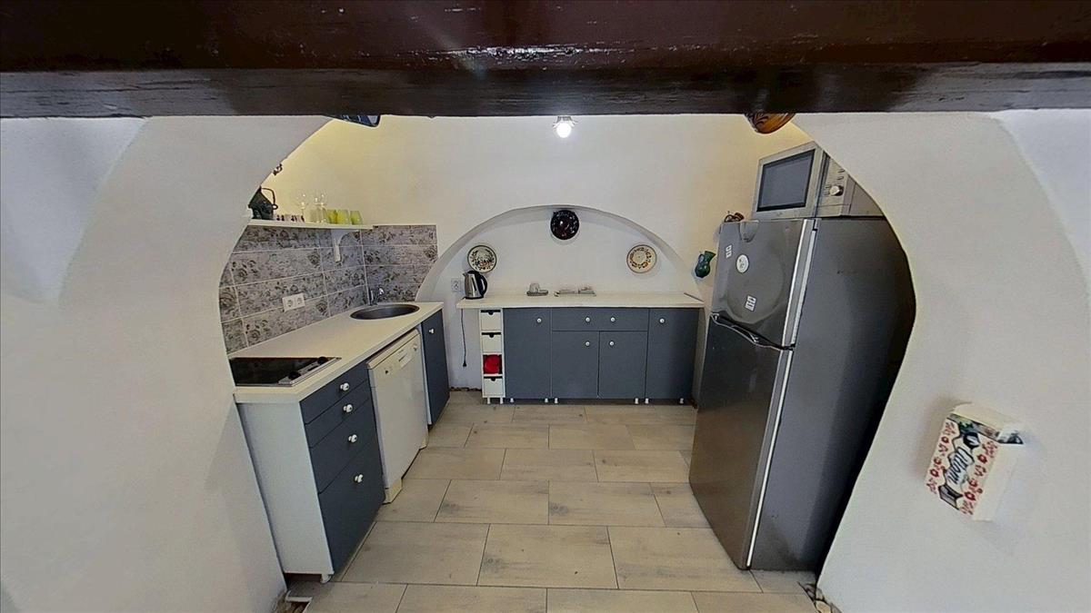Minden gépesítés és berendezés a vételár részét képezi (Gorenje villany főzőlap, mosogatógép, háztartási gépek, bútorok, Indesit hűtő, Ikea bútorok).