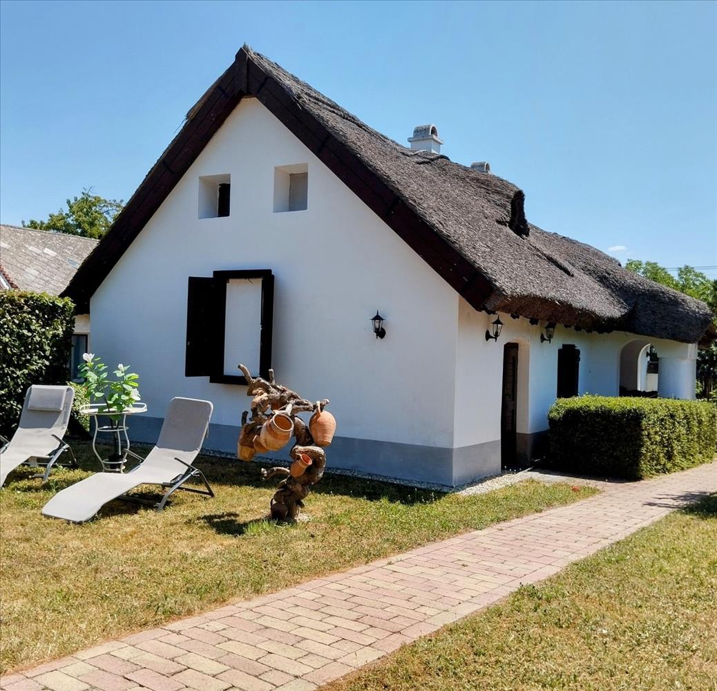 Balatonkenesén, a Balaton É-i partján eladó több, mint 100 éves múltra visszatekintő, 110 m2-es, tornácos, 3 és fél szobás, földszint plusz tetőteres, minden részletében gondosan felújított, lakóház mínősítésű nádfedeles parasztház, belterületi 785 m2-es saroktelken. Ez az otthon nem a divatot, hanem a valódi értékeket követi, amely egyszerre tiszteleg a régi építészet értékei előtt és kényelmet kínál a jelennek.