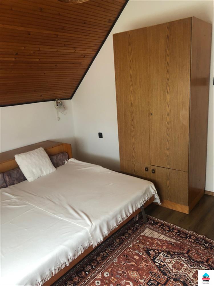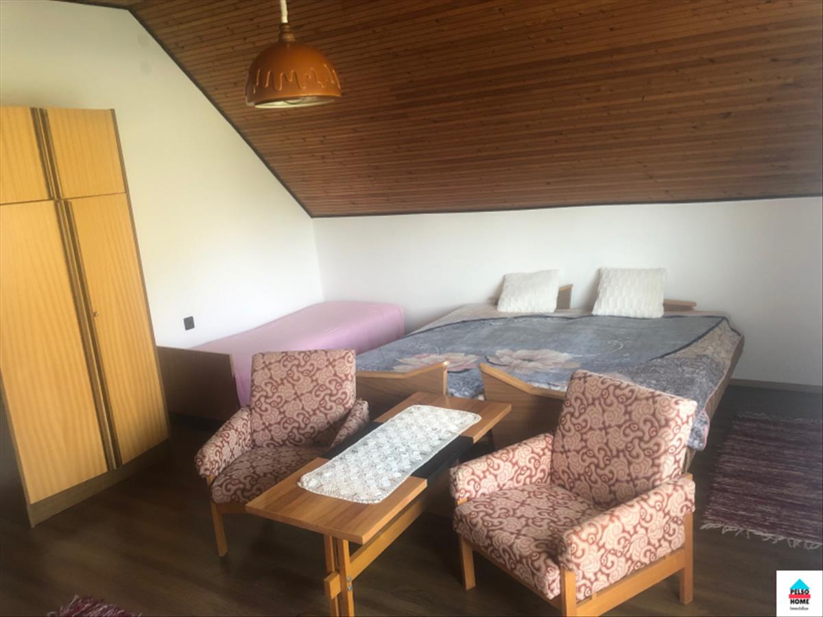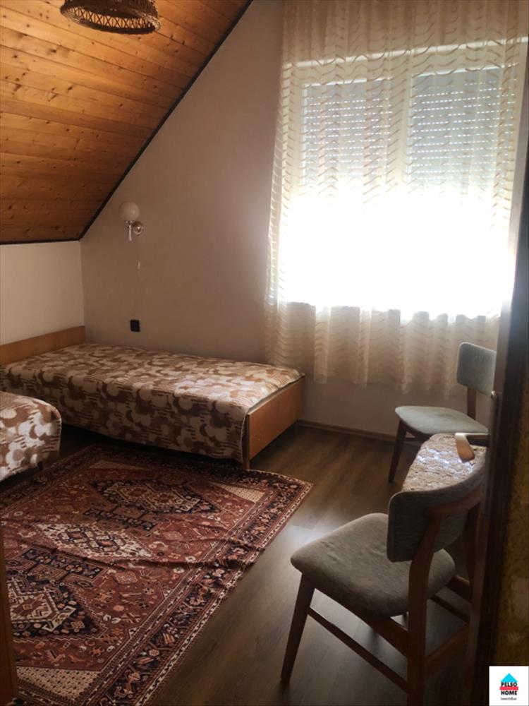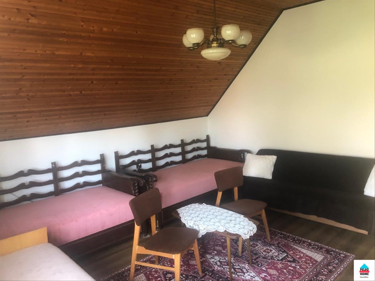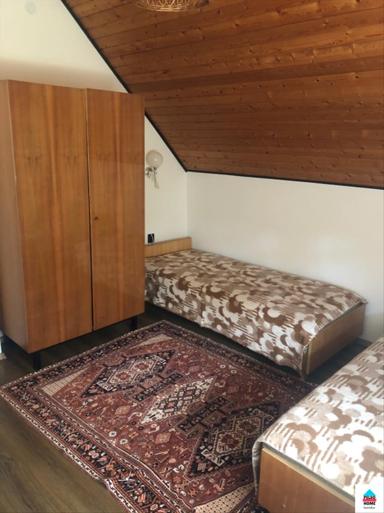 Az alsó szinten két hálószoba, nappali, konyha, étkező, fürdőszoba (káddal és zuhannyal), kamra és tároló. a felső szinten: nappali, további négy szoba amiből kettő erkélyes, fürdőszoba, konyhasarok. .