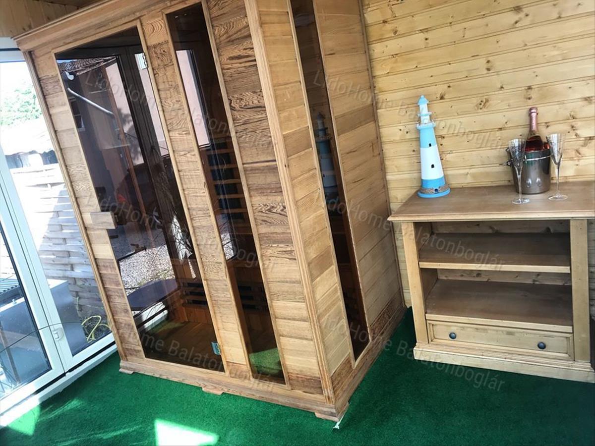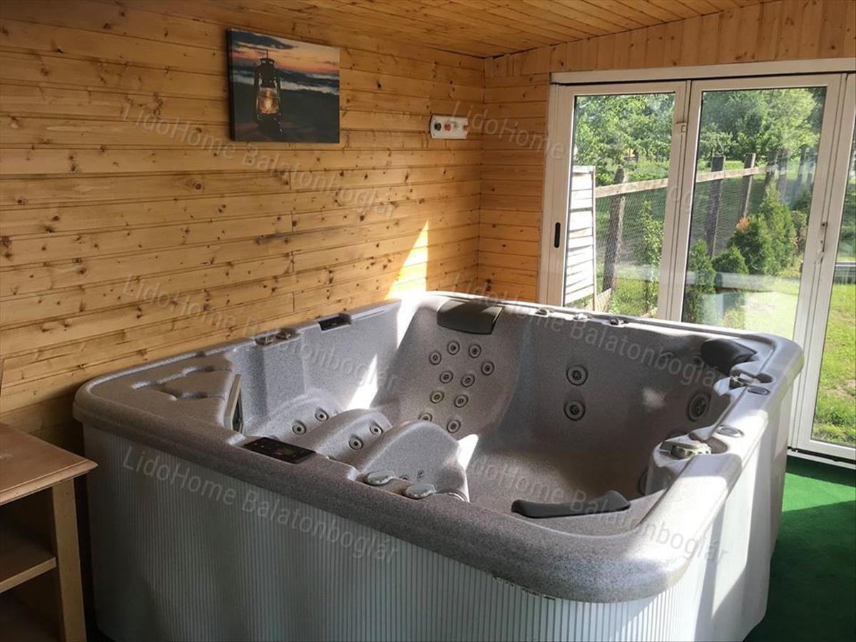 - Az udvarban található egy 2019-ben épített wellness helyiség, jacuzzival és infraszaunával.