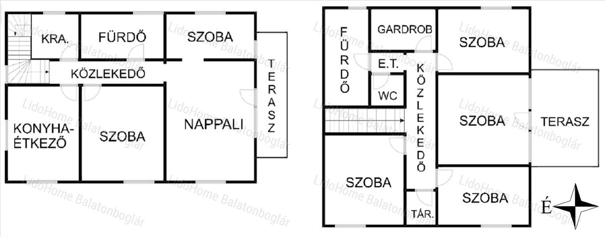 - Az emeleti részben 2, egyenként 100 -100 m2-es alapterületű lakás található, alaprajz szerinti helyiség kiosztással