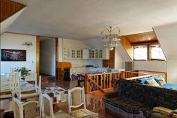 - hat tetőtéri szoba, melyhez külön fürdő+wc tartozik, egy tágas nagy nappali+ étkező