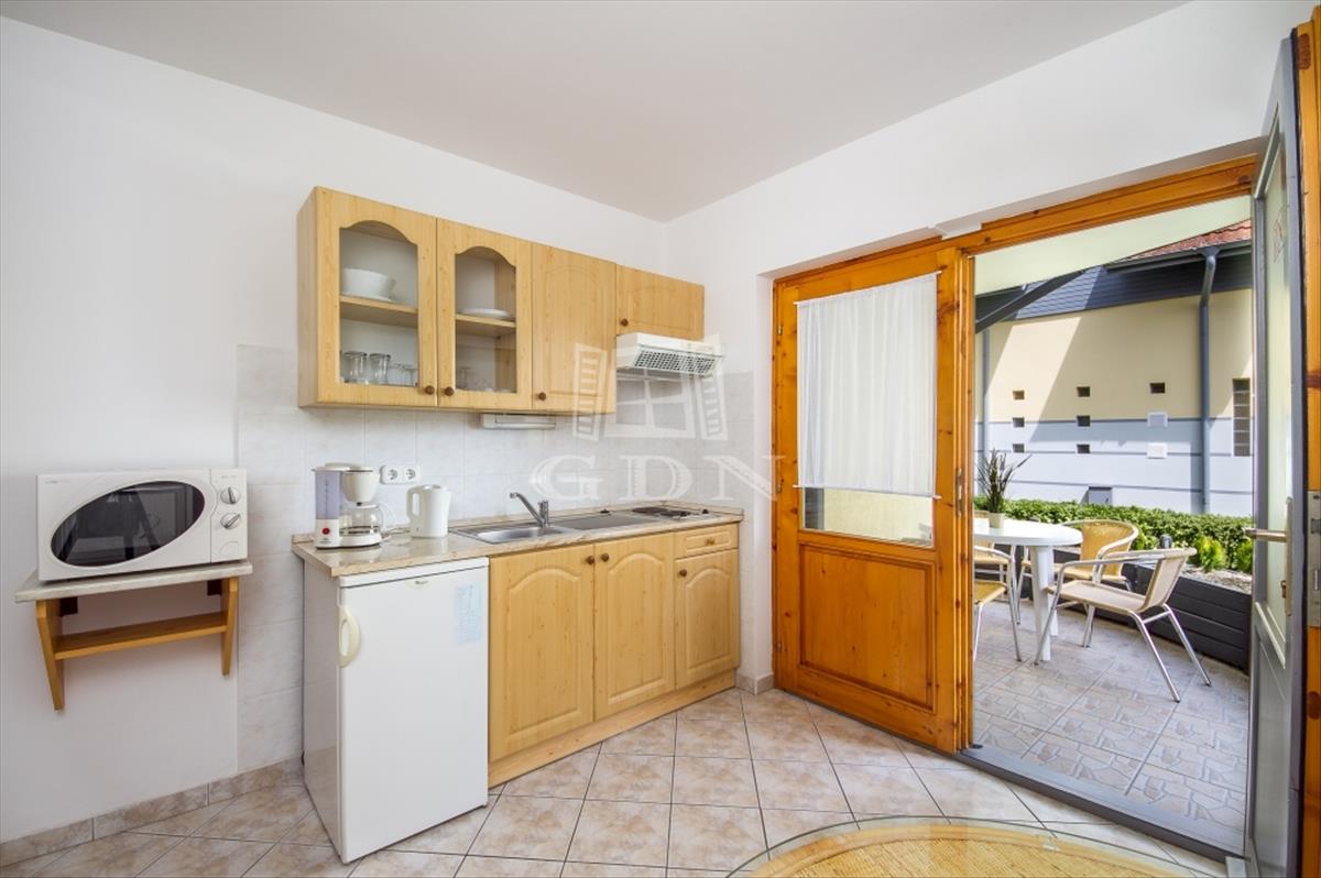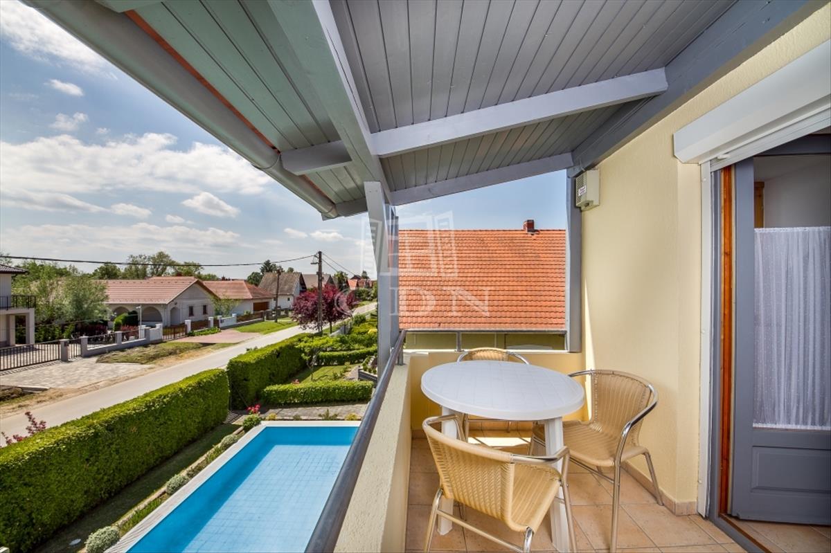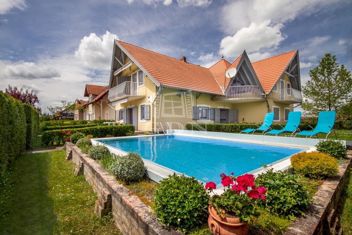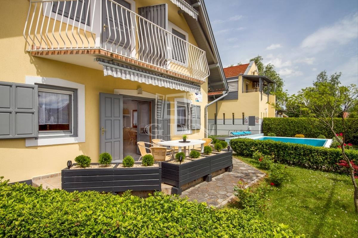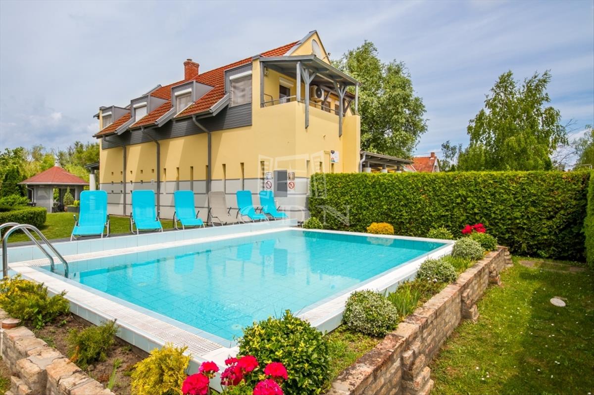 Az ingatlan feszített víztükrű medencével, tágas teraszokkal, erkélyekkel és parkosított kerttel, saját kocsibeállóval rendelkezik. Ideális befektetésként vagy saját használatra is, mivel jelenleg is apartmanként üzemel bejáratott vendégkörrel és ntak engedéllyel. Az ingatlan társasházzá minősítése jelenleg zajlik, melyet követően az 5 apartmanlakás akár önállóan is megvásárolhatóvá válik.