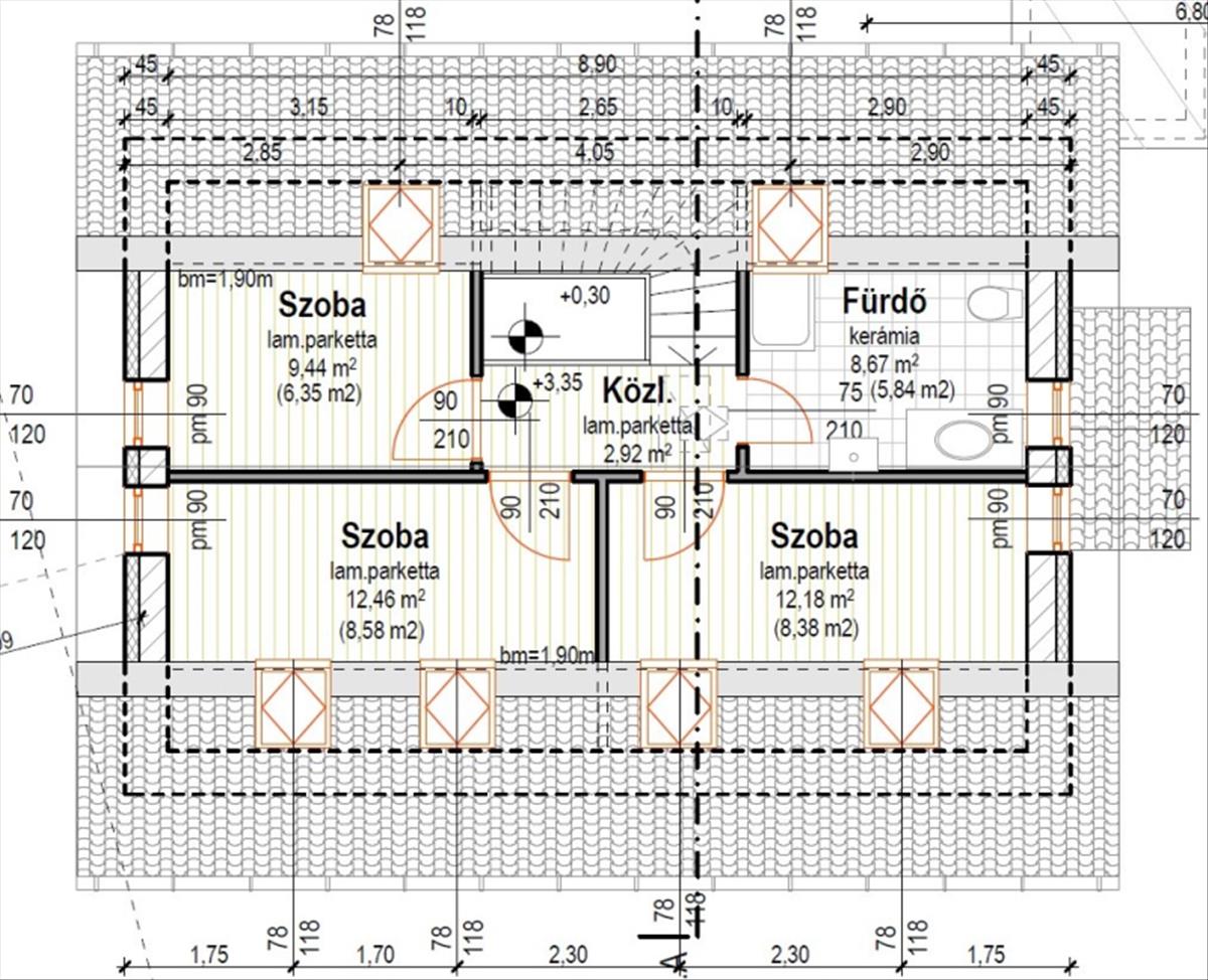 - Tetőtér:Beépített