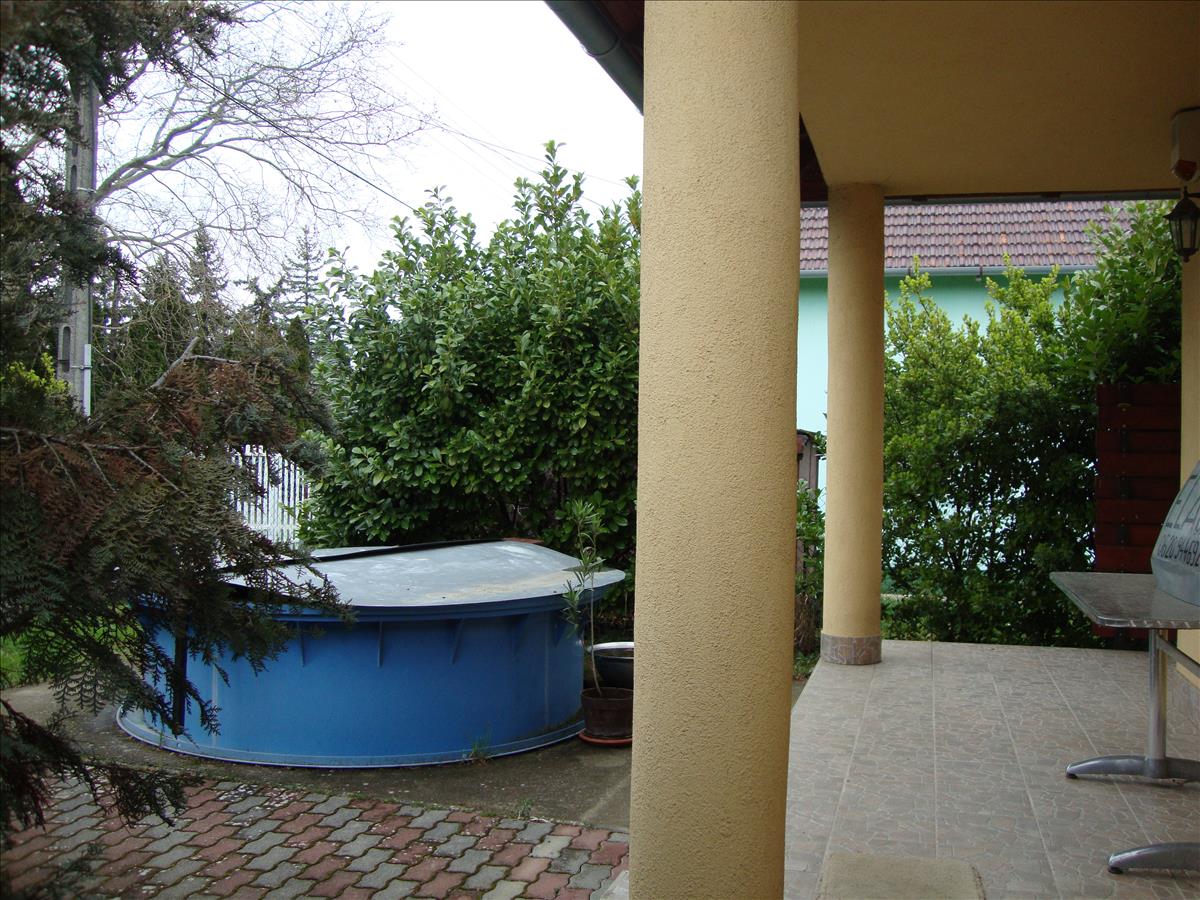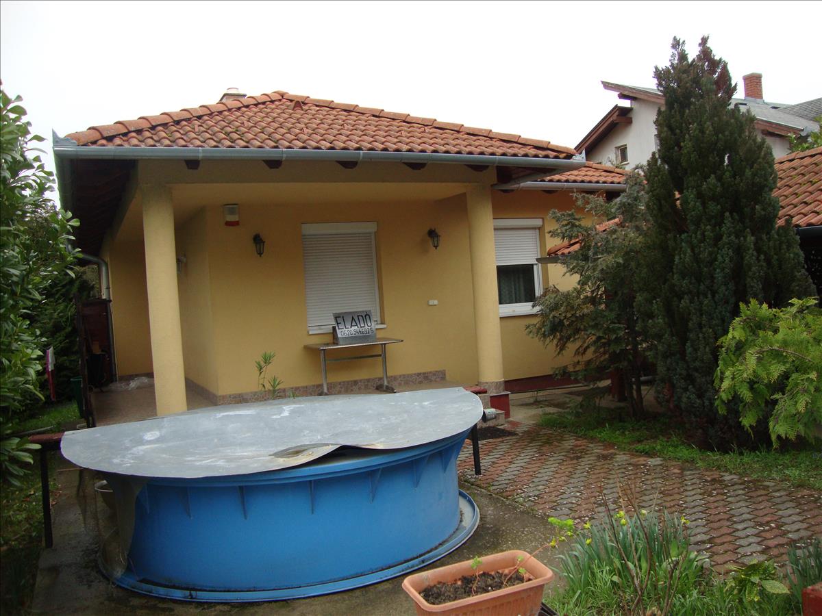 Csendes aszfaltozott mellékutcában van. a ház 38 cm vastag tégla + 8 cm vastag grafitos szigeteléssel, monolit födémmel épült, telken 2 db. Tároló, pince, kerti tető található.