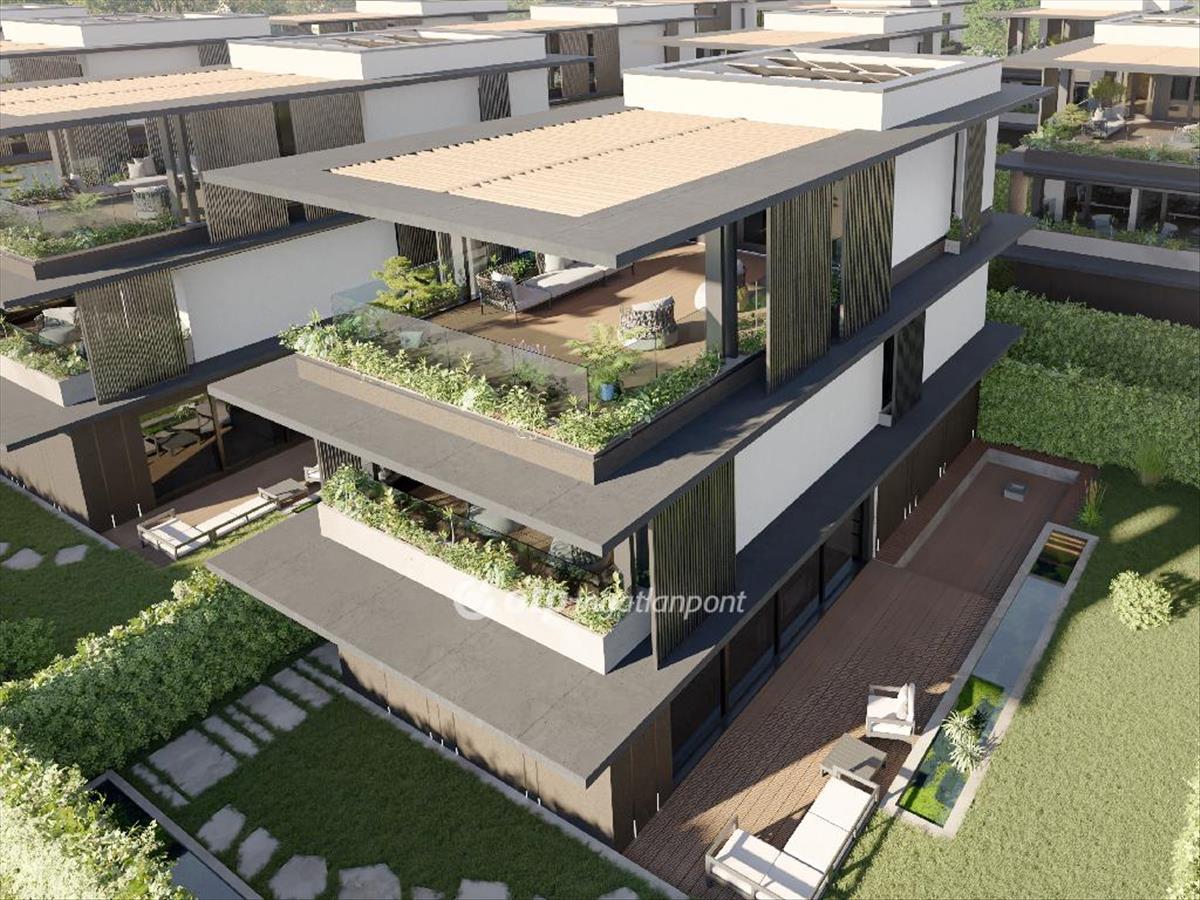 Eladó Luxus villák a Balaton egyik közkedvelt részén! a telek 80 m-re helyezkedik el a Balatontól, mely nyugodt, csendes helyen található. Különleges tervezésnek köszönhetően minden villaház balatoni panorámával rendelkezik. a beruházás több mint 6000 m2-en valósul meg, jelen állapotban kivitelezés alatt. a 13 darab villaház három sorban, egymástól függetlenül helyezkednek el. a kivitelezés folyamán mind az anyaghasználatban és technológiában a legmagasabb minőséget használják fel. a projekt kialakításának és kidolgozottságának köszönhetően egyedi, kivételes beruházás. Mindegyik villa saját parkosított, öntözőrendszerrel ellátott kerttel rendelkezik. a házak egymástól fizikálisan 1, 8 m magas borostyán kerítéssel vannak elválasztva, ezzel a vertikális örökzöld fallal biztosítva a természet közelségét, ellenben az egymástól való távolságot a nyugodt kikapcsolódáshoz szükséges intimitást. a házak földszintjén tágas, a mai kornak megfelelően kialakított kertkapcsolatos nappali, étkező és konyha került kialakításra, amely a legtöbbet használt közösségi tér. Az emeleten két darab teljes méretű szoba és hozzá tartozó gardrób került elhelyezésre, valamint egy nagy méretű káddal és zuhanyzóval is ellátott fürdőszoba. Mindkét szoba rendelkezik loggiával, így a természet közelsége itt is jelen van. a felső emeleten található egy nagy szoba gardróbbal és a hozzá tartozó fürdőszobával. Valamint itt található egy több mint 40 m2-es tetőterasz, statikus árnyékolással és balatoni panorámával.