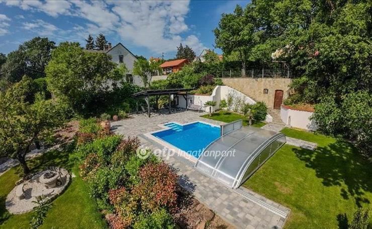 A 1198 m? -Es telek gondosan parkosított, dísznövényekkel beültetett udvara igazi kikapcsolódási paradicsom: automata fedéssel ellátott, 5x5 méteres medence, játszótér, bográcsozó, valamint egy fedett grillterasz is rendelkezésre áll. a telek felső részén elhelyezett hangulatos panorámaterasz tökéletes egy pohár bor melletti naplementenézéshez.