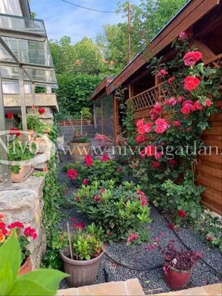 Az ingatlan 949 m2-es elektromos kapuval ellátott, körbekerített, parkosított, több mint 100 féle növénnyel beültetett (mediterrán növények, ritka fák, veteményes-és fűszerkert) gondosan karbantartott telken helyezkedik el, ahol kialakításra került egy hangulatos, teljesen felszerelt, gépesített, 21 m2-es nyári konyha, egy 24 m2-es kocsibeálló illetve több autó számára viacolor térkővel burkolt kocsibeálló is illetve még kerti zuhanyzó, bográcsozó-grillező és egy tároló kamra is megtalálható. a kertben van még fúrt kút és a locsolórendszer is ki van építve.