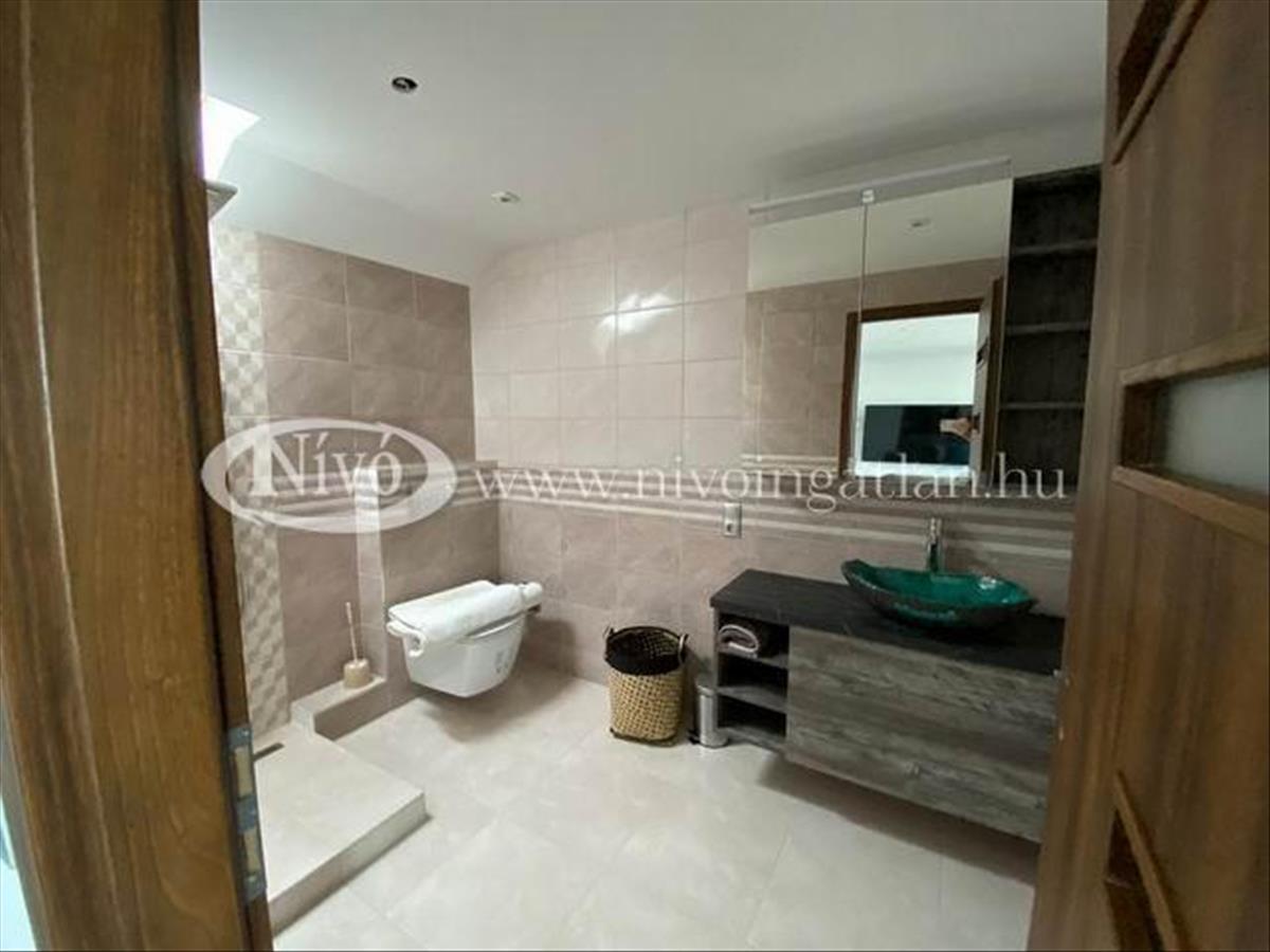 Az épület téglából épült, 10 cm-es szigeteléssel, Bramac fedésű. 2021-Ben teljeskörűen fel lett újítva (vezetékek, szaniterek, burkolatok, nyílászárók stb. ). Az ingatlan áll egy szuterén szintből, egy emeletből és egy tetőtérből. a világos, kertkapcsolatos szuterén szintet (nagy szoba, fürdőszoba + wc + mosókonyha) kívülről és épületen belül is meg tudjuk közelíteni. a "földszinten" kialakításra került egy amerikai konyhás nappali-étkező, egy fürdőszoba WC-vel és egy gardrób helyiség, erről a szintről nyílik egy balatoni panorámával rendelkező 31, 08 m2-es terasz. Az emeleten található egy nagy méretű, tágas, világos nappali-hálószoba-dolgozósarok, külön gardróbbal és fürdőszobával, WC-vel, ahol a nagy üvegfelületen keresztül csodálhatjuk a Balaton látványát.