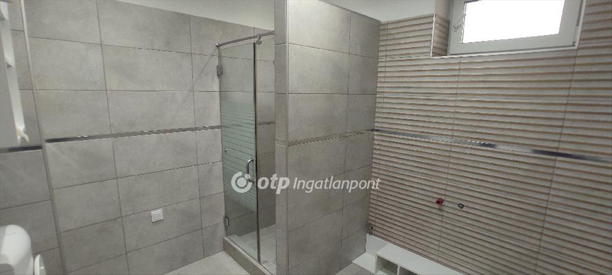 -Modern burkolatok, ízléses fürdőszoba beépített zuhanyzóval, akár fürdőkád is elhelyezhető