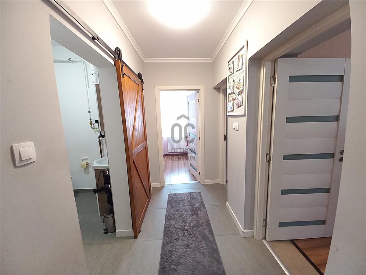 - konyha- étkező- nappali, 3 hálószoba, fürdőszoba és közlekedő elosztású