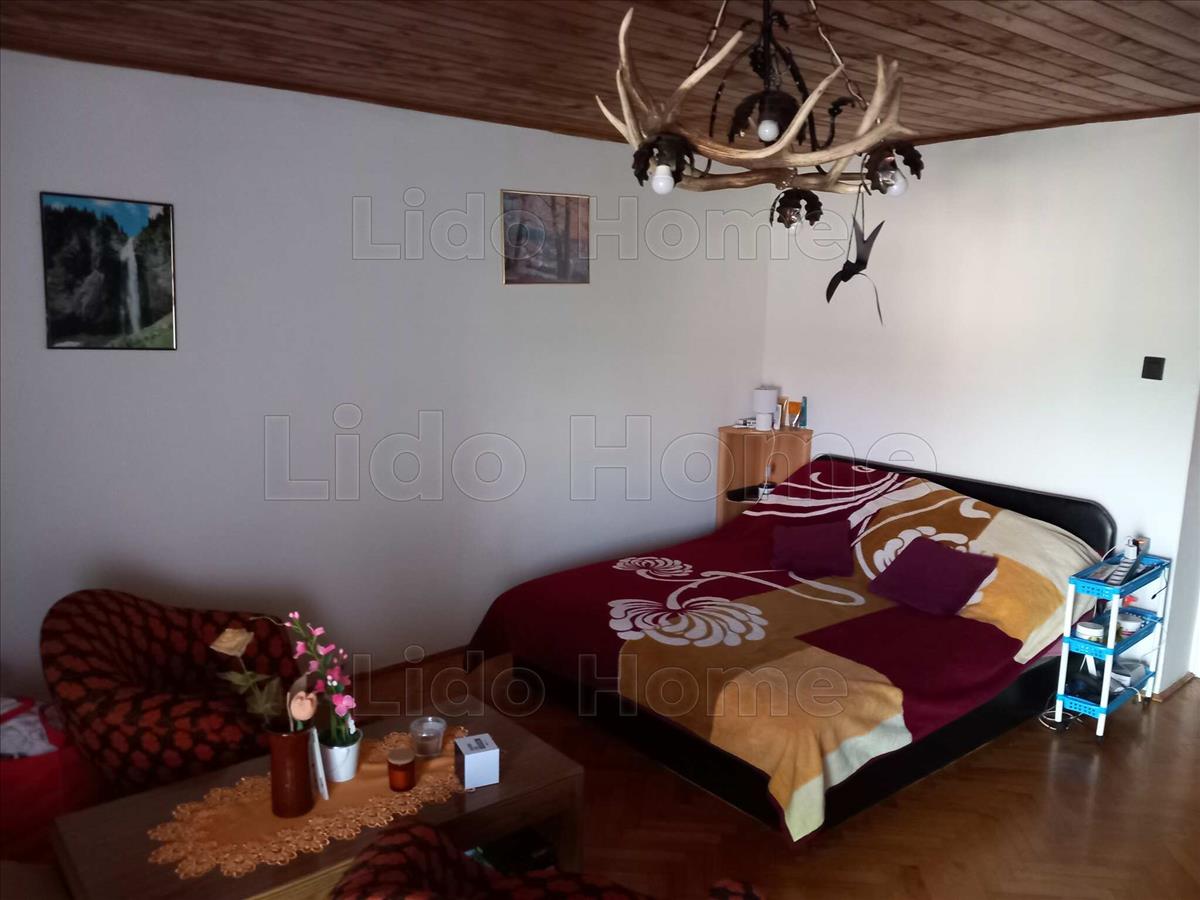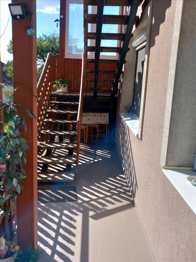 A külön bejáratú felső szint külön is funkcionál, mivel itt is megtalálható a 2 hálószoba, nappali, konyha, étkező és a fürdőszoba.