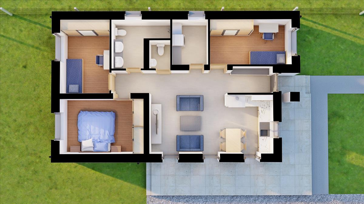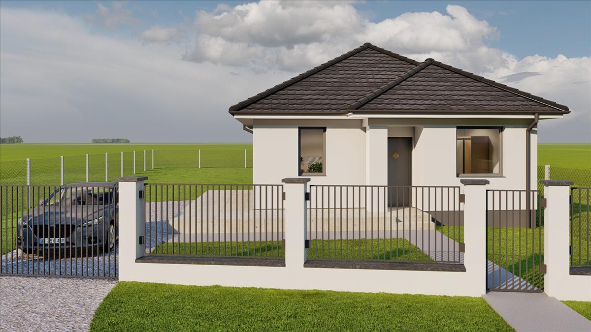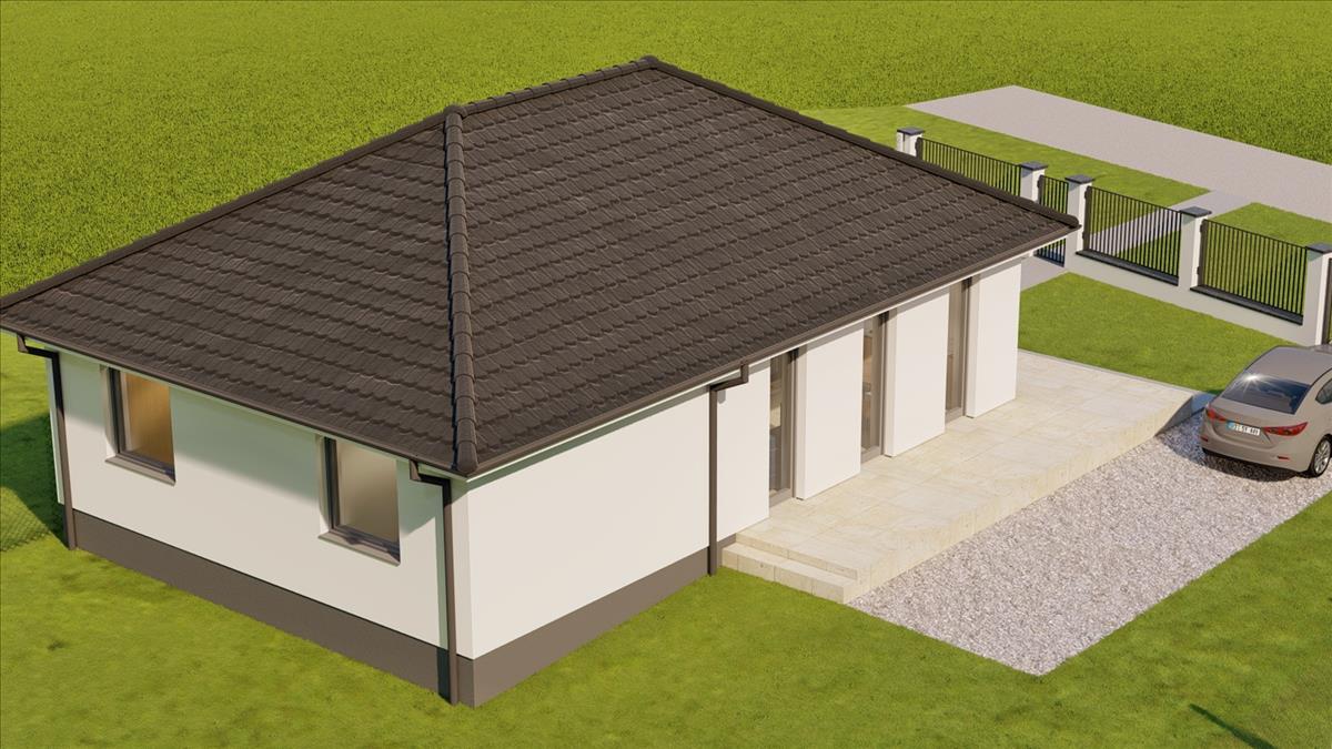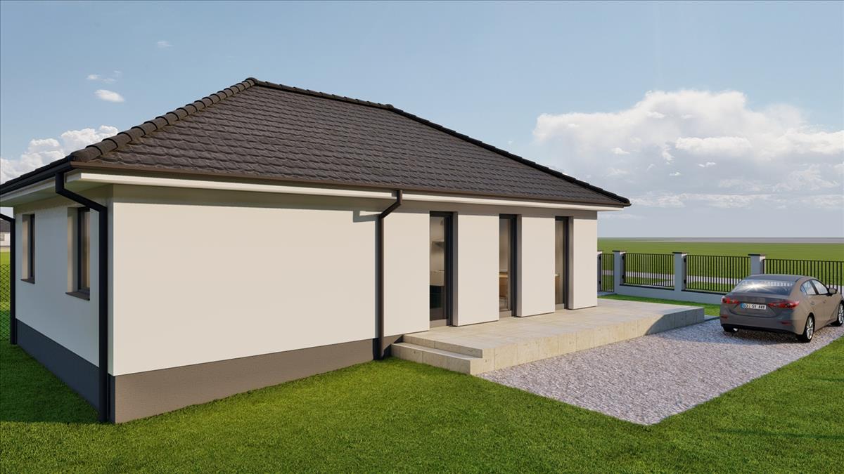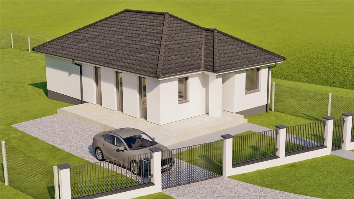 A település központjához közel, nagyméretű telken /1500 nm / építik fel ezt a nettó 80, 5 nm -es családi otthont. 27 Nm-es terasszal. .
