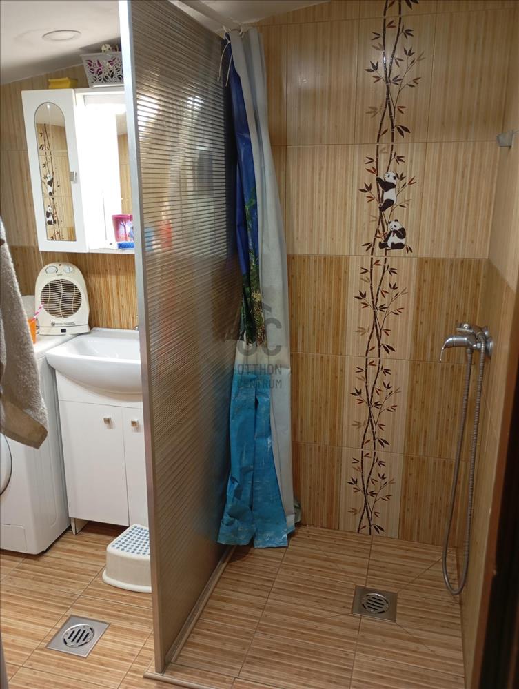 A fürdőszoba zuhanyzós.