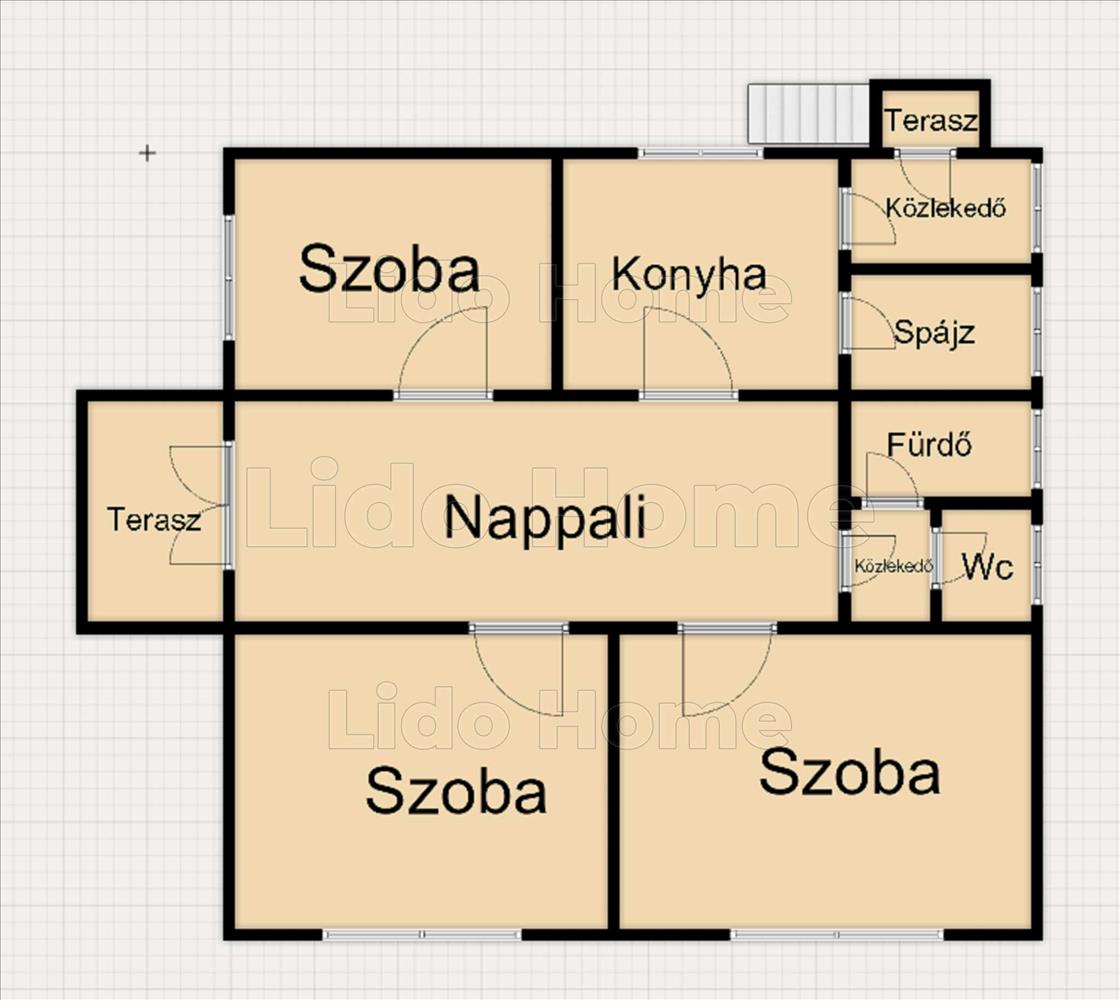3 Kényelmes szoba, tágas nappali, konyha + spájz, fürdő és külön wc, közlekedő, terasz a pihenéshez.