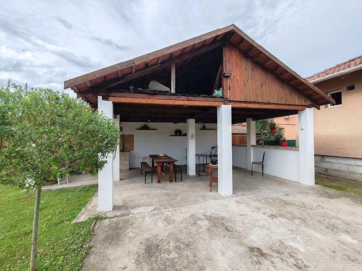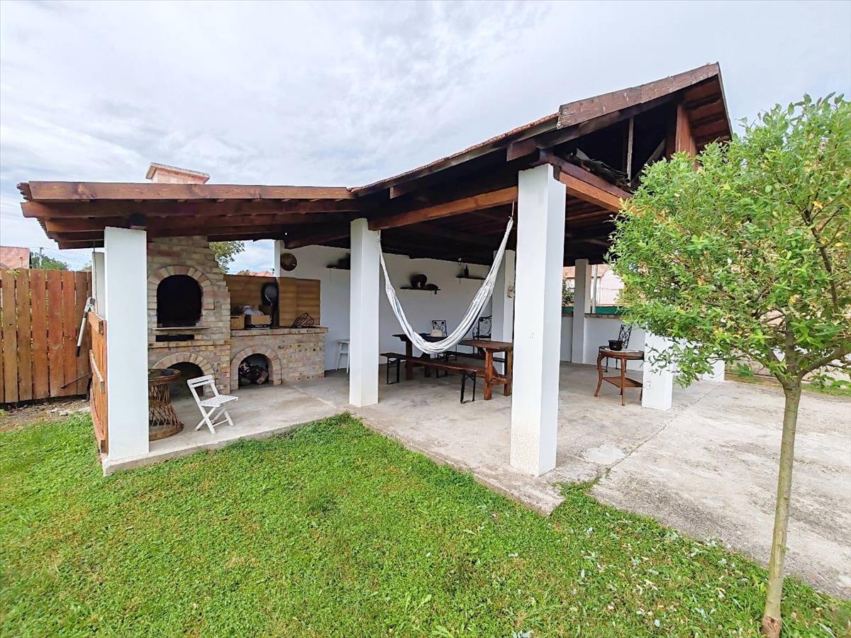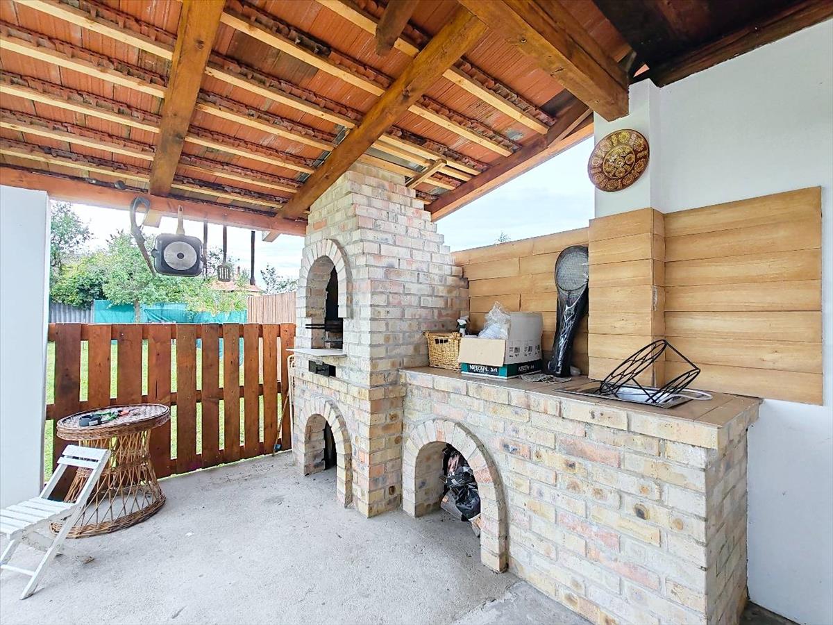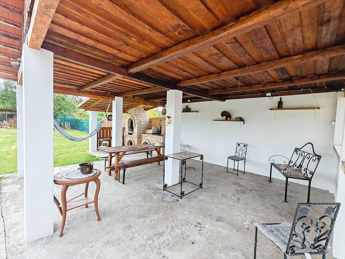 Ami a kerti partikat felejthetetlenné teszi, a fedett bográcsozós hely. Különleges, egyedi és folytatható a terasz összeépítés is a házból teljesen fedetten biztosítaná a járkálást.