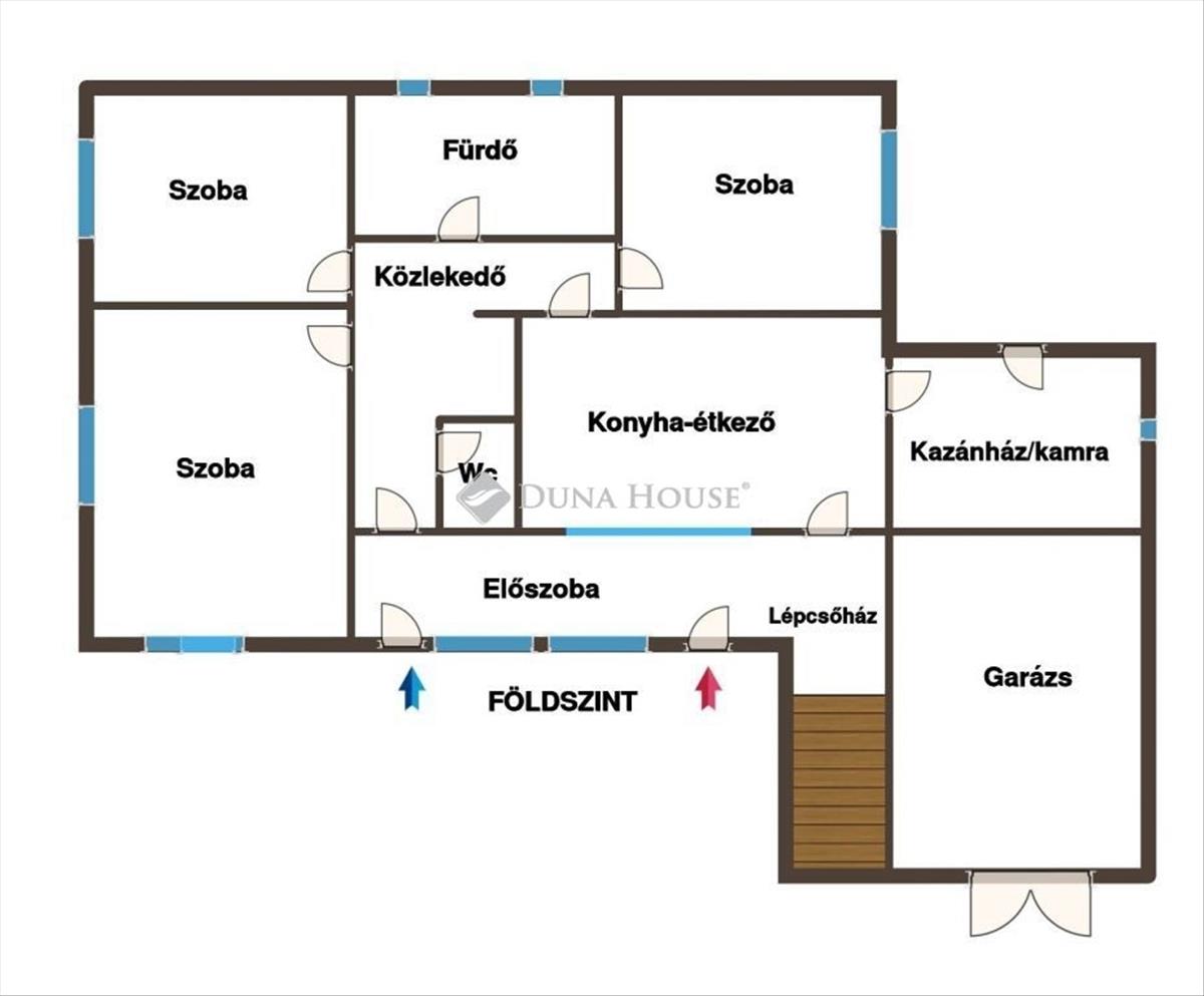 A földszinten egy tágas nappali, két hálószoba, konyha-étkező és kamra található, valamint egy nagyméretű fürdőszoba fürdőkáddal és külön wc. a fűtés gáz cirkóval, padlófűtéssel megoldott.