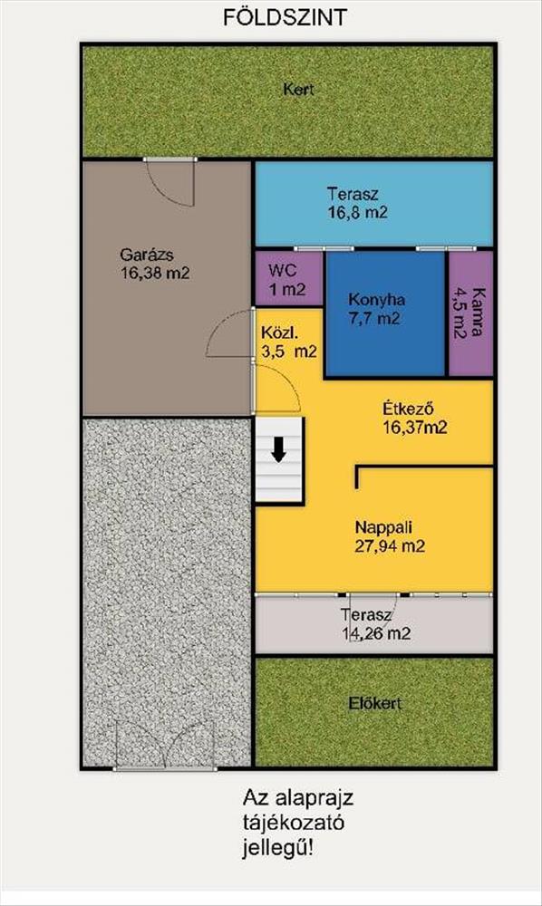 •. Földszinten amerikai konyha, nappali, wc, kamra, közlekedő