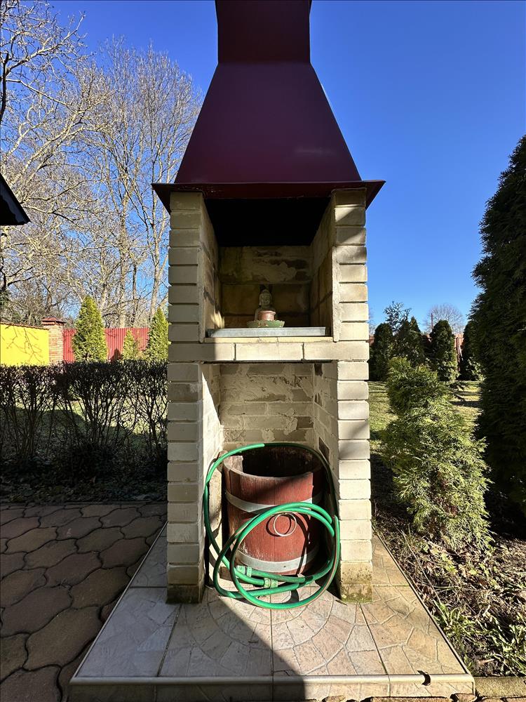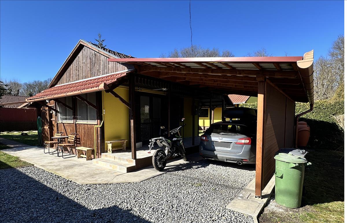 A jobb oldali kapubejáró közelében egy beton alapozású, 20 m2-es, szoba- konyha- fürdőszoba+WC beosztású könnyűszerkezetes ún. „Kis ház „ került, mely Baumit nemes vakolat borítást kapott, teljes külső-belső villamos hálózat és dugalj-kapcsoló cserén esett át, a közvetlen környezete pedig betonozásra került, a bejárata előtti 10, 7 m2-es teraszként használható fedett folyosóra kültéri járólap került. a házikó elöl-hátul árnyékoló előtetővel egészült ki. a lambériás kültéri tűzfalak a tisztítás után állagmegóvó festésben részesültek. a kapubejáróval szemben, egy zajmentes lindab tetővel épült, fa szerkezetű, oldalán védett, a kapubejárótól zúzott kővel felszórt, 21 m2-es kocsibeálló került. Az esővizet egy műanyag római korsó gyűjti a locsoláshoz. Az épület egyedi villanyórával rendelkezik, a fűtését egy gázkonvektor biztosítja, a meleg vizet egy 50 l-es villanybojler.