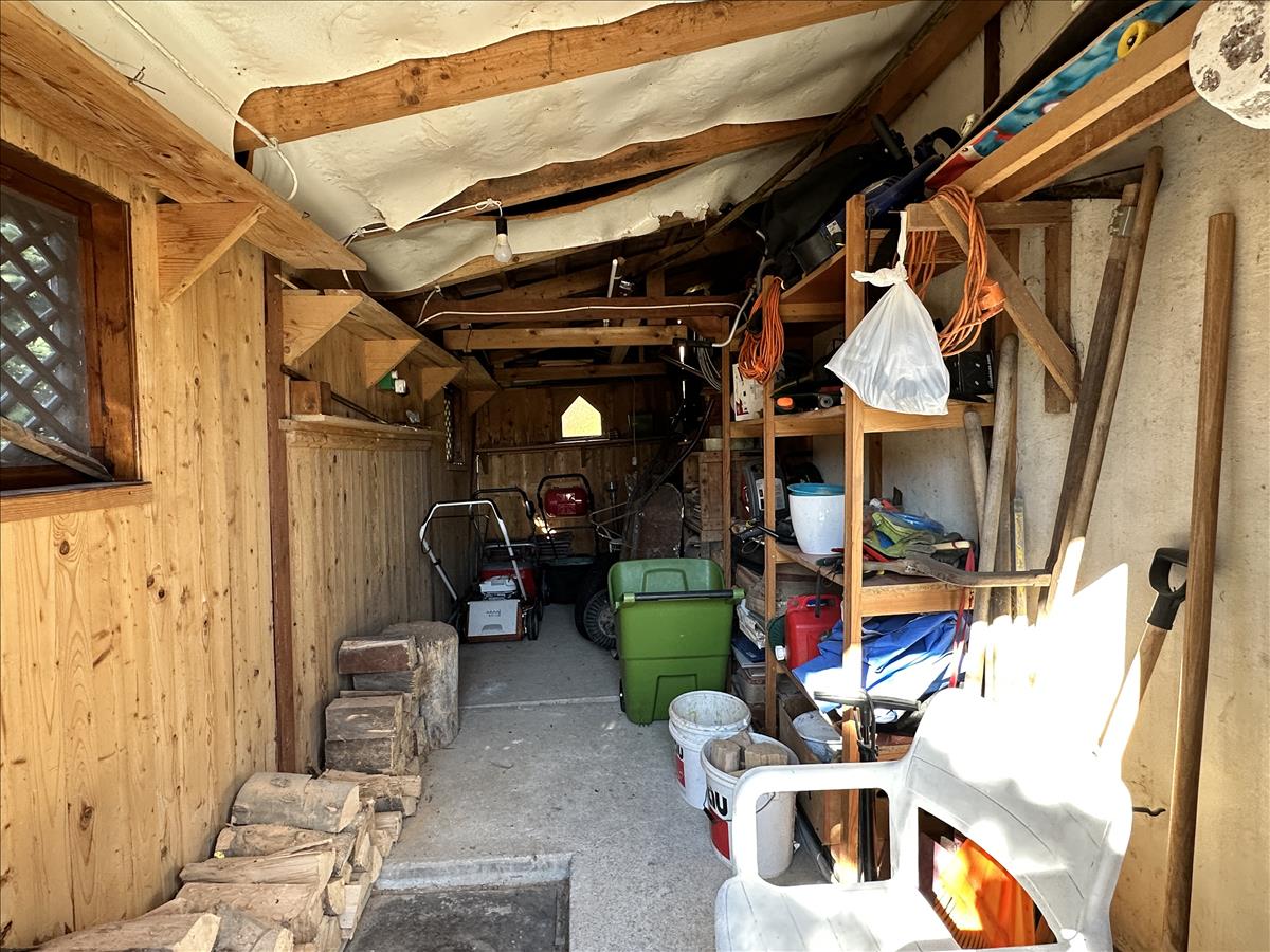 A „kis ház ” melletti, 13 m2-es, faszerkezetes, ajzatbetonos, polcozott szerszám- és tüzelőtárolóban van a szennyvízakna, ami a városi hálózatra csatlakoztatható, ebbe csak a „kis ház” -ból kerül szennyvíz.