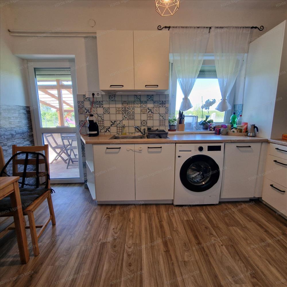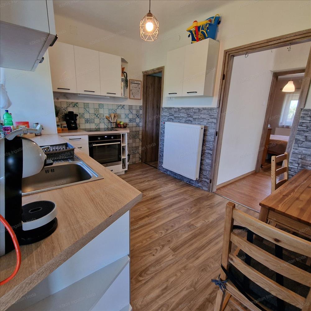 Kompakt méretű, 2 szobás ingatlan 1990-ben épült beton alapra, 40-es falazattal. Hőszigetelt nyílászárói 3 rétegezésű üveggel, alumínium redőnnyel, szúnyoghálóval felszereltek. 4 Évvel ezelőtt a villanyvezeték teljes cseréjének kivitelezése megtörtént. Fűtéséről, és a melegvíz ellátásról kondenzációs gázkazán gondoskodik. Tavaly beszerelésre került egy 3KW-os inverteles klíma, és a gépiesített konyha beépítése is megvalósult.