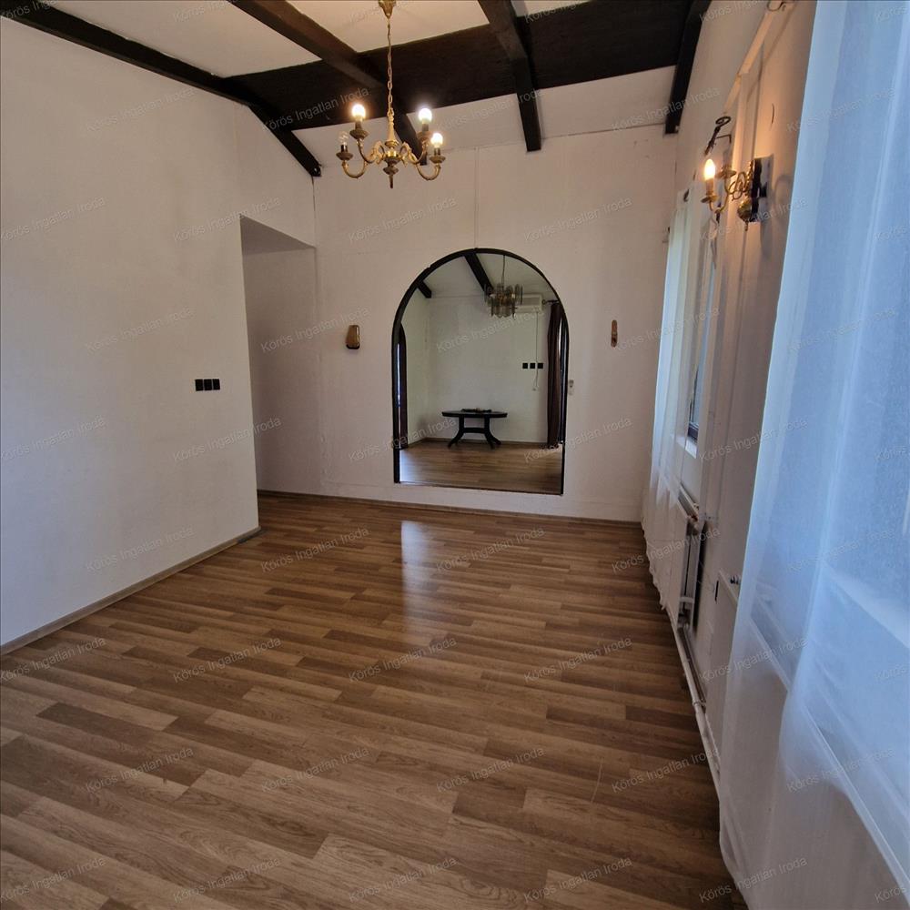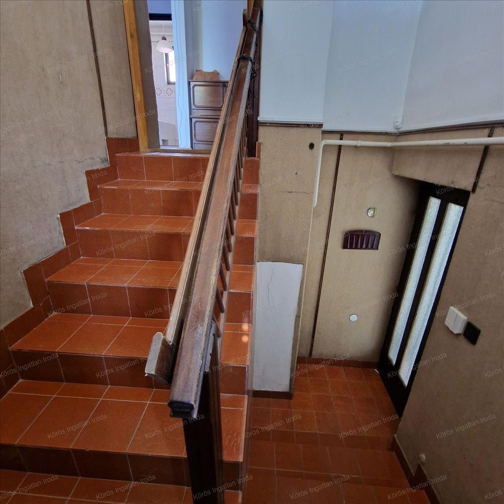 Szélfogóval védett külső lépcsőn jutunk az emeletre. Itt egy szinteltolásos konyha-étkező-nappali, 2 szoba, fürdőszoba, wc. , Közlekedő, és erkély szolgálja kényelmünket. Nyílászárói hőszigetelt fából készültek, zsalugáter árnyékolóval. Vizesblokkok hidegburkolattal, míg a szobák parkettával ellátottak. Fűtése gáz cirkó, radiátoros hőleadókkal.