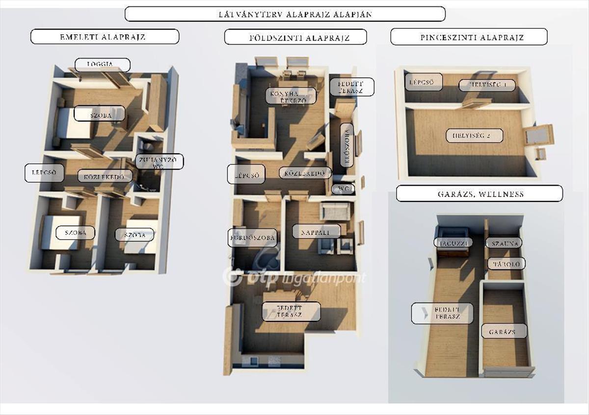 Extrák: pince, garázs elektromos kapuval, fedett teraszok, kamera- és riasztórendszer