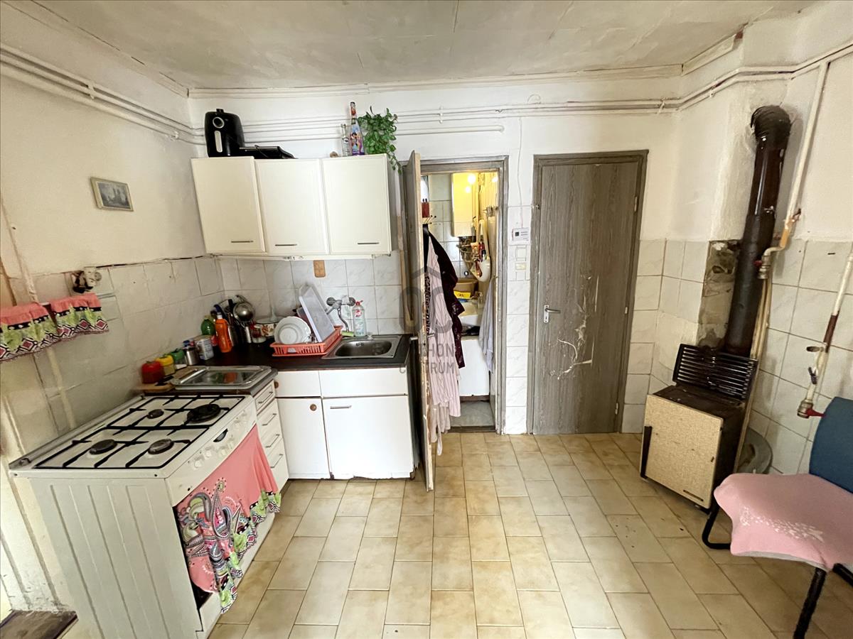 A házba érve egy előszobába érkezünk, majd egy tágas étkezőbe, ezután találjuk a konyhát, 2 nagy szobát, fürdőszobát és egy kamrát is.