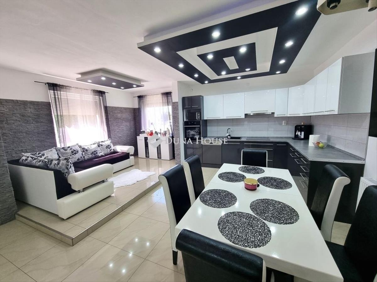 ▪️Földszint: Az épületbe belépve, egy 39 m²-es, gyönyörű amerikai konyhás nappaliba érkezünk, amely modern kialakítású, ideális családi összejövetelekhez. a ház központi helyiségét két tágas, hálószoba (21 m² és 13, 5 m²), valamint egy fürdőszoba és egy wc veszi körbe.