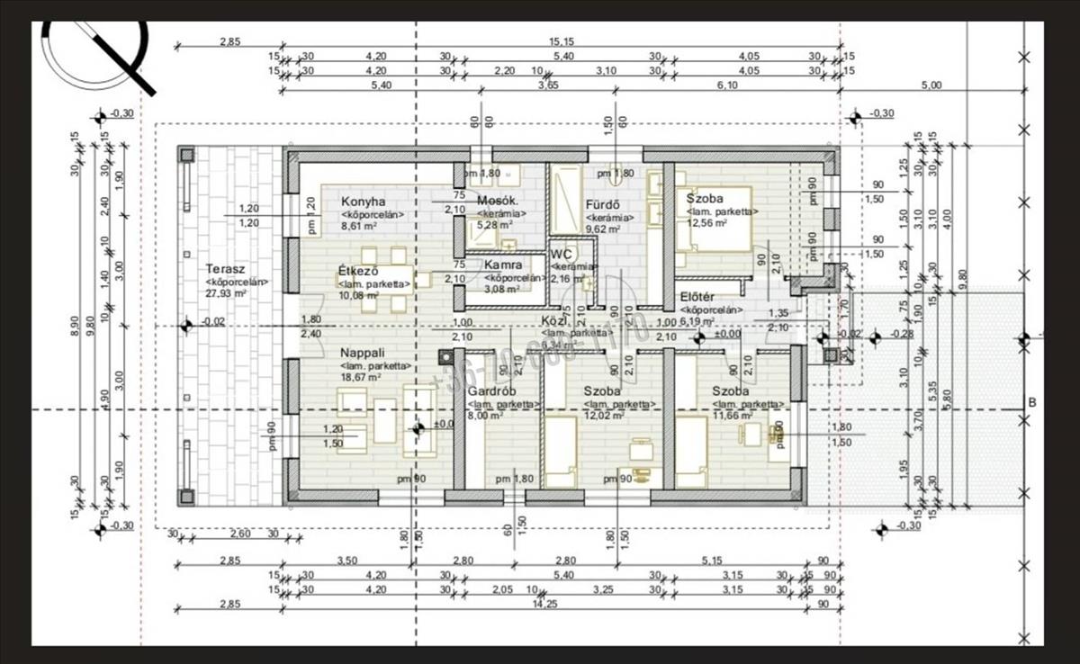 Eladó Berkenyén építés alatt álló 114 m2-es családi ház, 28 m2-es terasszal, mely egy 1651 m2-es telken helyezkedik el. Az ingatlanban egyedi igény szerint kerülhet kialakításra a belső tér. Választható a járó felületeken vinyl padló, laminált padló vagy csempe burkolatok. a fürdőszobában kiépítésére kerülhet fürdőkád, zuhanyzó vagy több zuhanyzó üvegfallal vagy épített formában. Homlokzati szín és a szoba falak színei igény szerint választhatók. Az ingatlan 30-as Porotherm téglából, látszó fa fagerendás födémmel vagy gipszkartonall (szigetelése 30 cm kőzetgyapot ), Terrán beton cserép tető borítással készül. a házban riasztó rendszer lesz kialakítva. a szigetelés 15 cm-es vastag grafitos hőszigetelésű lesz. Az épület fehér színű műanyag nyílászárói 3 üvegrèteggel kerülnek kialakításra. a padlófűtès hőszivattyúval fog üzemelni. a házban 3 db szoba, 1 db kamra, 1 db fürdőszoba toalettel valamint egy külön álló wc is lesz. Továbbá 1 db gardrób, 1 db mosókonyha, valamint tágas amerikai konyhás nappali található, melyben tetszés szerint kandallónak vagy cserépkályhának használható kémény kerül kiépítésre. Az épület szellőztetését egy hővisszanyerős szellőztetési rendszer fogja biztosítani. Kialakításra kerül a szoba és nappali helyiségben H tarifás klímának kiállítások. a napelemes rendszer a ház dél, délnyugati fekvése miatt igény szerint kiépíthető, a napelemes rendszer kiállása kiépítésre kerül. Az árban az épület csempe burkolatai 8. 500 Ft/m2-es, a laminált padló burkolatai 6. 500 Ft/m2-es értékben választható.A nagy telken lévő új házból gyönyörű dombokra van kilátás és séta távolságra található a festői tavacska is.
