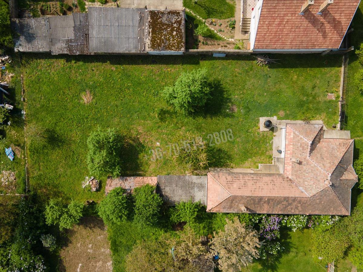 A ház egy 1097m2-es, körbekerített, sík telken helyezkedik el, melyen pár gyümölcsfa is helyet kapott.