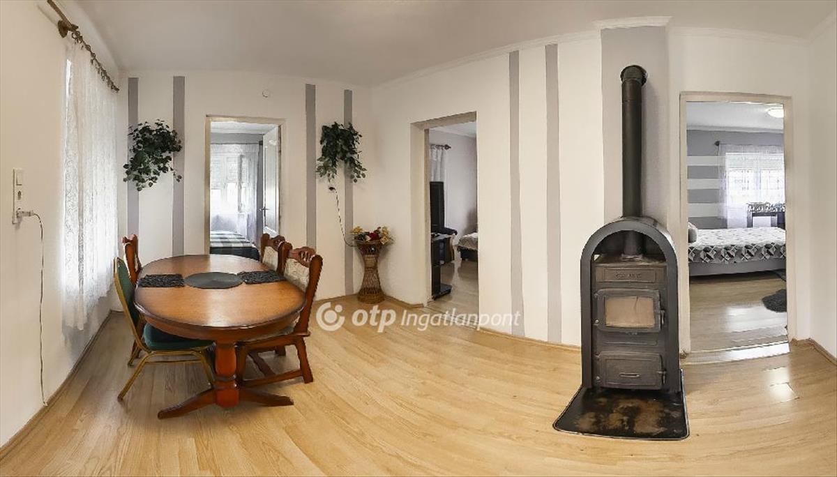 Az ingatlan a település központjától mindössze néhány percnyi sétára, egy nyugodt mellékutcában található; 1370 m2-es telek, garázs, egyéb melléképületek tartoznak hozzá. a szerkezetileg stabil, beton alapra épült, tégla falazatú ház tetőszerkezetét síkpala héjazat fedi. a külső falak esztétikai szempontból még felújításra szorulnak, ugyanakkor a belső terek korszerűsítése a közelmúltban történt. a 2 bejárattal rendelkező lakóépület délnyugati homlokzata előtt 6, 6 m2-es hidegburkolattal ellátott, fedett terasz húzódik, mely igény szerint beépíthető. a házon belül összesen 9 helyiséget - 3 szobát, 1 félszobát, 1 konyhát, 1 étkező-nappalit, 1 fürdőszoba-WC-t, 1 előszobát, és 1 közlekedőt - alakítottak ki. Tervben van a konyha bővítése a főzőfülkeként is használt, vízvezetékkel ellátott közlekedő irányába. a belső felújítás során új aljzatbeton készült; a konyhát, és a tusolóval felszerelt fürdőszobát járólappal burkolták, a többi helyiségbe laminált parketta került. a nyílászárókat (egy bejárati ajtó kivételével) mind cserélték: a modern műanyag hőszigetelt ablakokat redőnnyel szerelték fel; a fehérre festett beltéri ajtók fából készültek. a házban az áram-, a víz-, és a csatornahálózat teljesen megújult. a gázt nem kötötték be, a gázcsonk az udvarban rendelkezésre áll. a gipszkartonnal borított belső falak kőzetgyapot hőszigetelést tartalmaznak. Az otthon melegéről hagyományos fűtés, fatüzelésű kandalló gondoskodik, a meleg vizet villanybojler biztosítja. Kiváló elrendezésének köszönhetően az ingatlan tökéletes választás lehet nagyobb családok számára is; állapotát tekintve azonnal költözhető, per- és tehermentes, falusi CSOK igénylésére alkalmas.