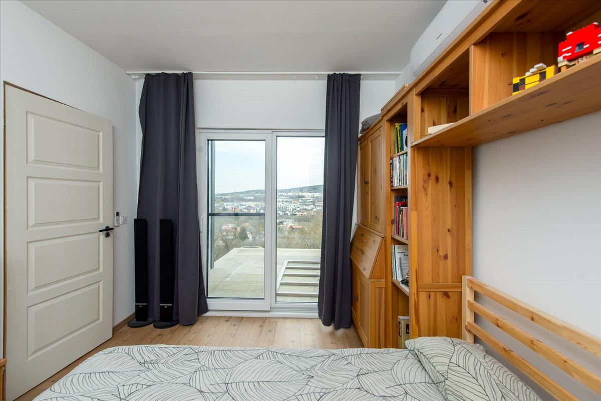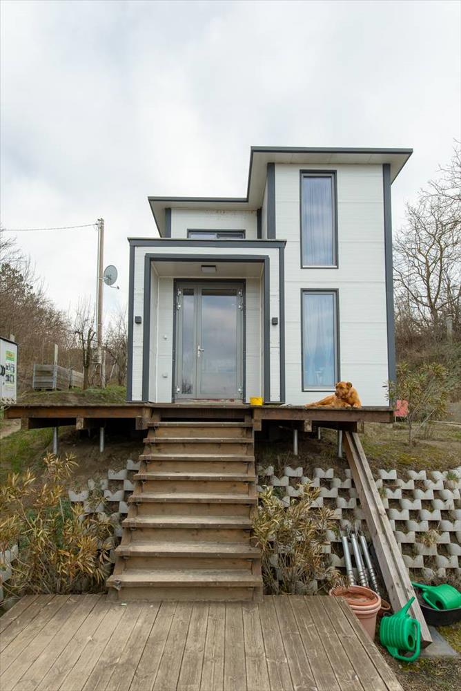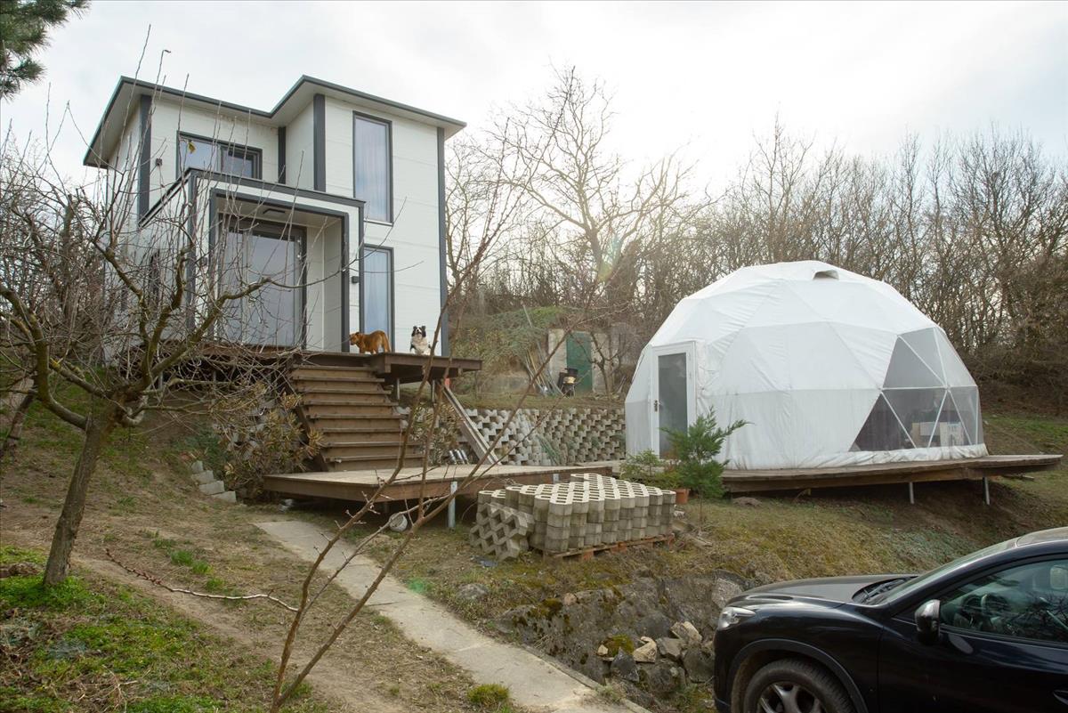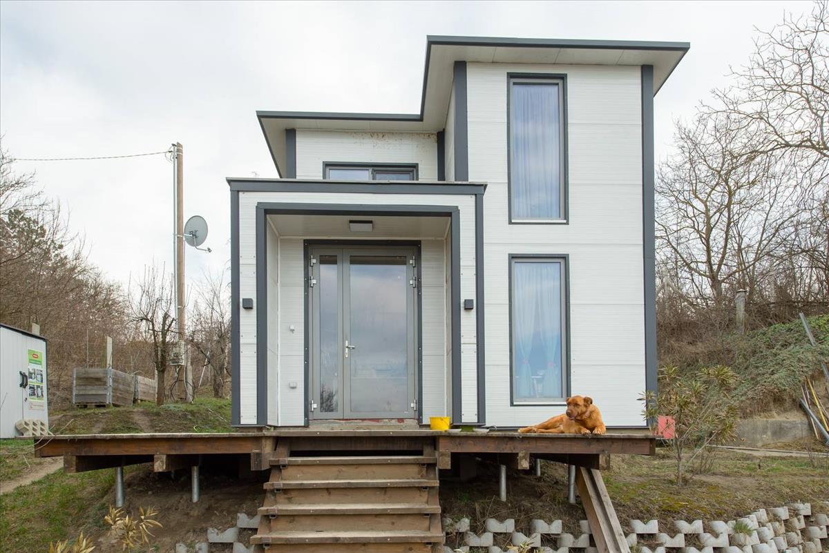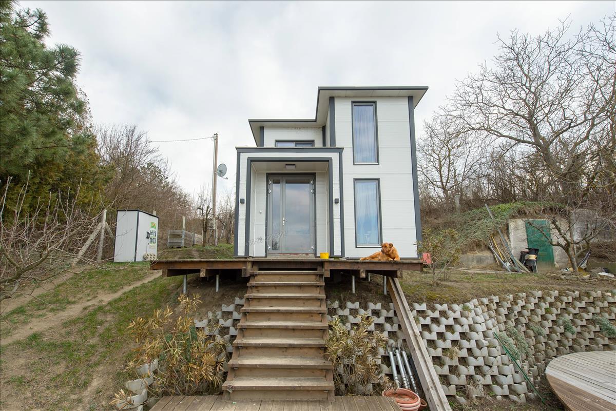 Eladó Biatorbágyon egy 60 m2-es örökpanorámás, 2022-ben épült könnyűszerkezetes ház, amely a Naphegy északi oldalán helyezkedik el egy természethez közeli 1341 m2-es telken.