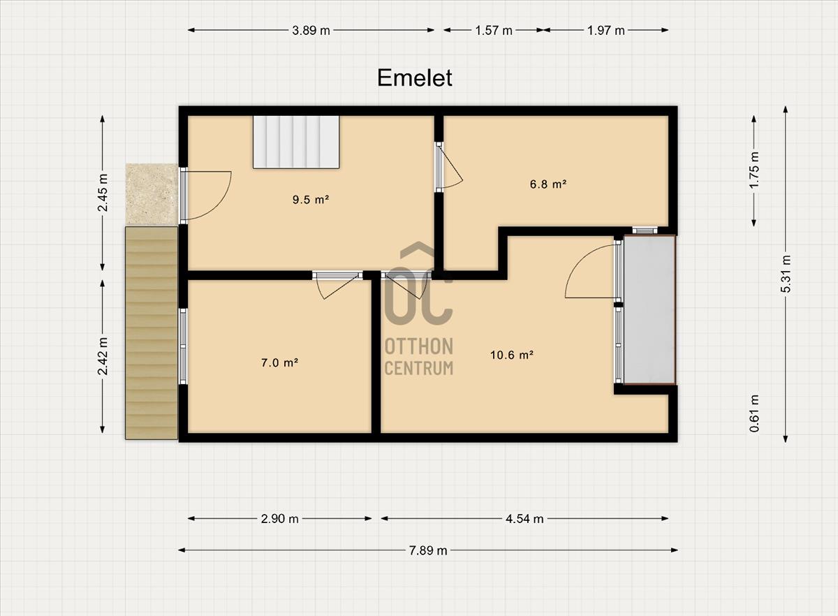 Az emeleti lakrész a házon belülről és kívülről is lépcsőn megközelíthető.