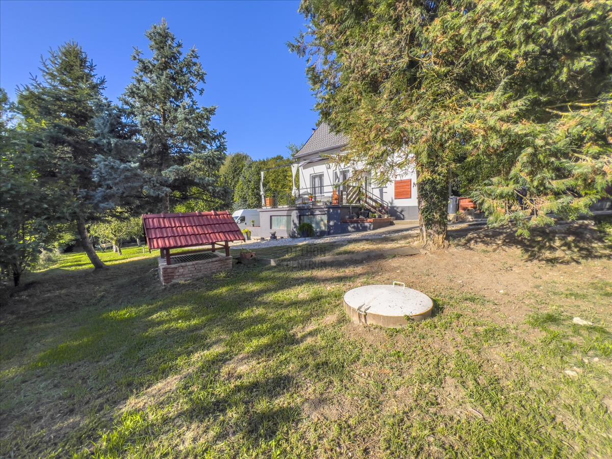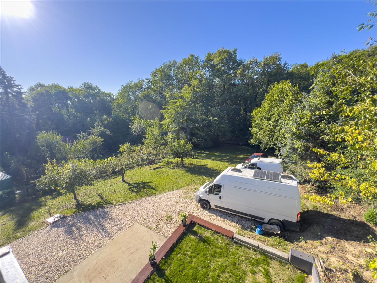 A telek végében ősfás erdő, kertben gyümölcsfák vannak.