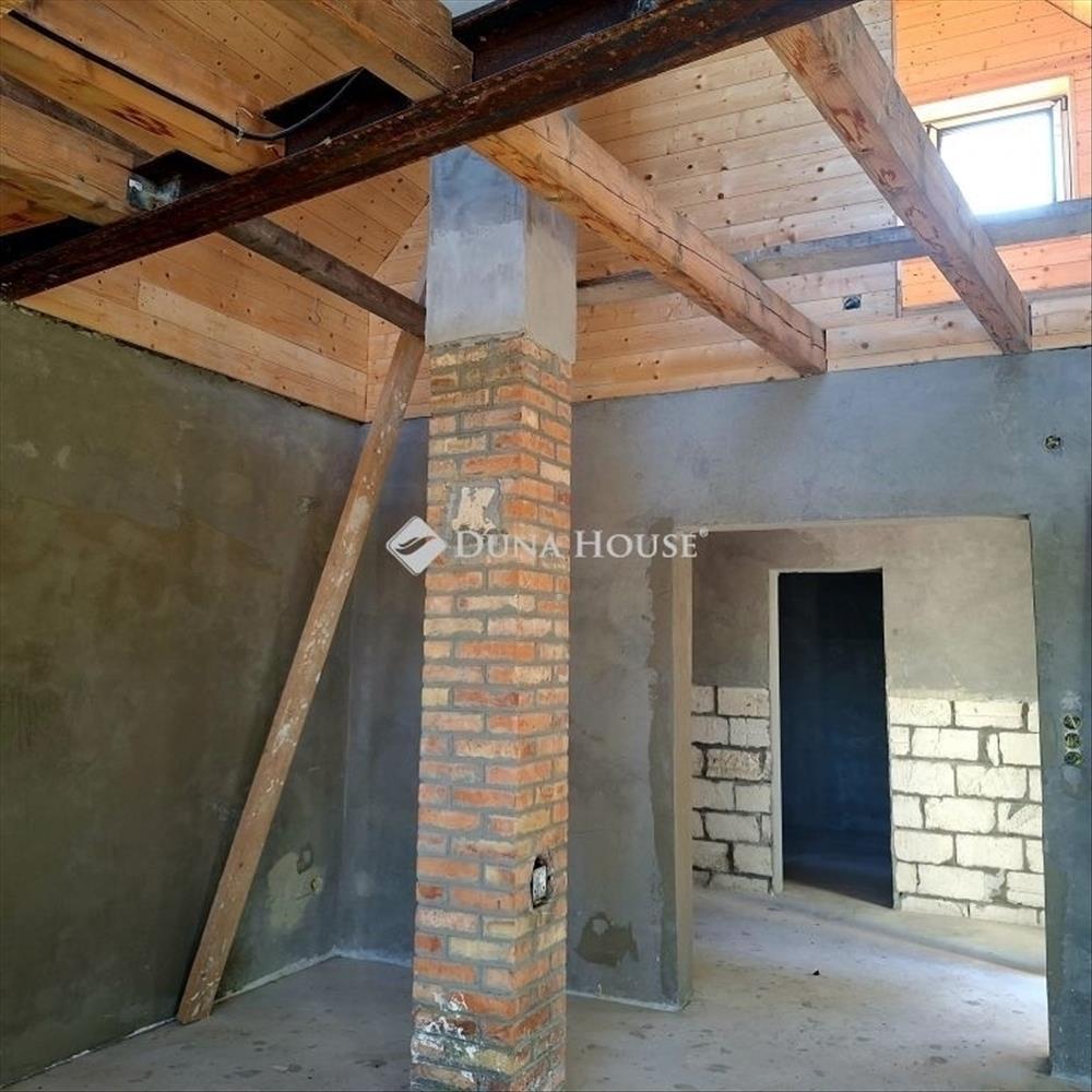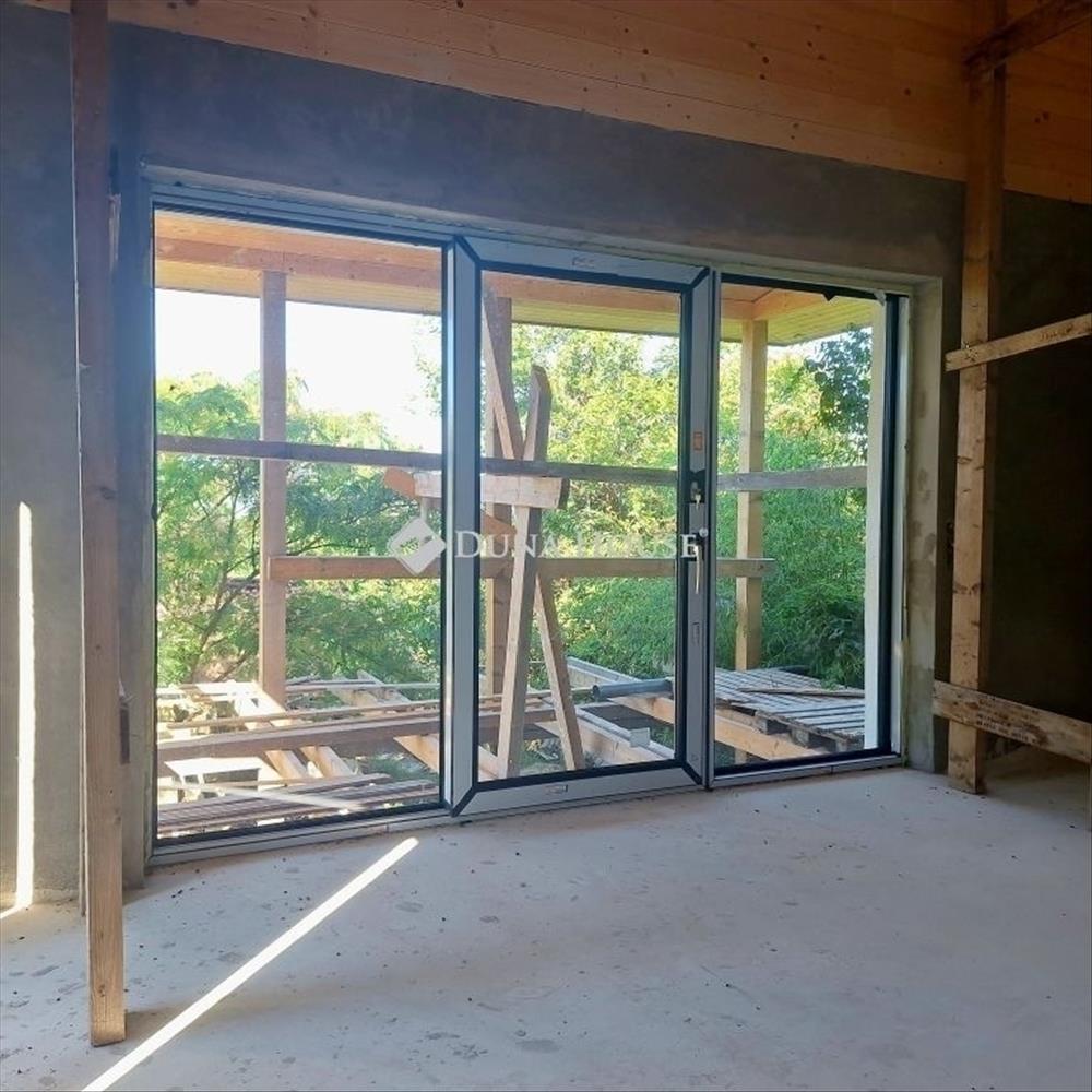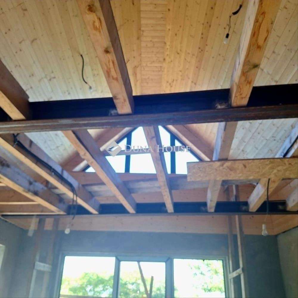 A látszó acél és fa gerendák, a padlótól plafonig érő panorámaablakok és a nagy, napfényes terasz karakteres, mégis otthonos hangulatot teremtenek, ahol minden részlet mögött tudatosság rejlik. Nincs teljesen kész de épp ez benne a lehetőség!