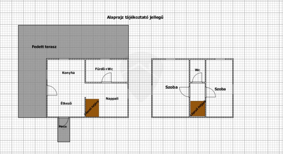 •Földszint: konyha–étkező, nappali, fürdőszoba + wc