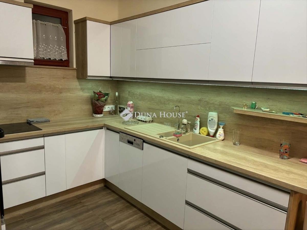 Földszinten található egy tágas előszoba, ahová új biztonsági műanyag ajtón jutunk be. Innen egy napfényes étkezőbe, amiből nyílik a gyönyörűen kialakított, teljesen gépesített, modern konyha.