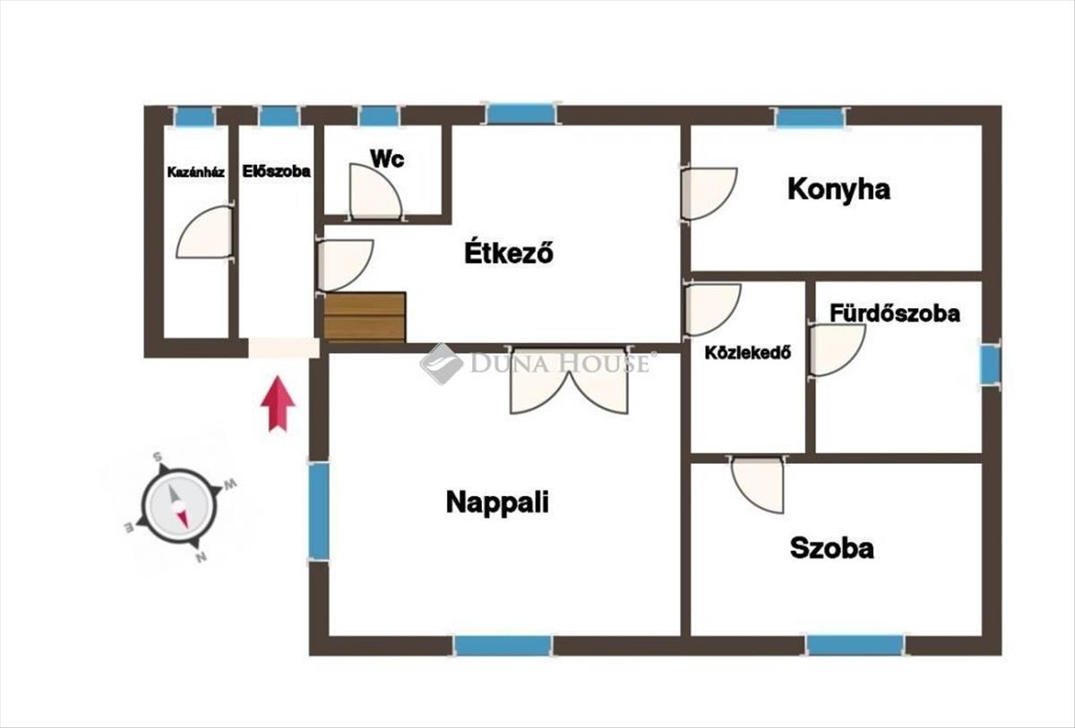 Nyílászárói az újabb bukó-nyíló fa ablakok, viszont van ahol új műanyag lett már beépítve, az említett bejárati ajtóval együtt.
