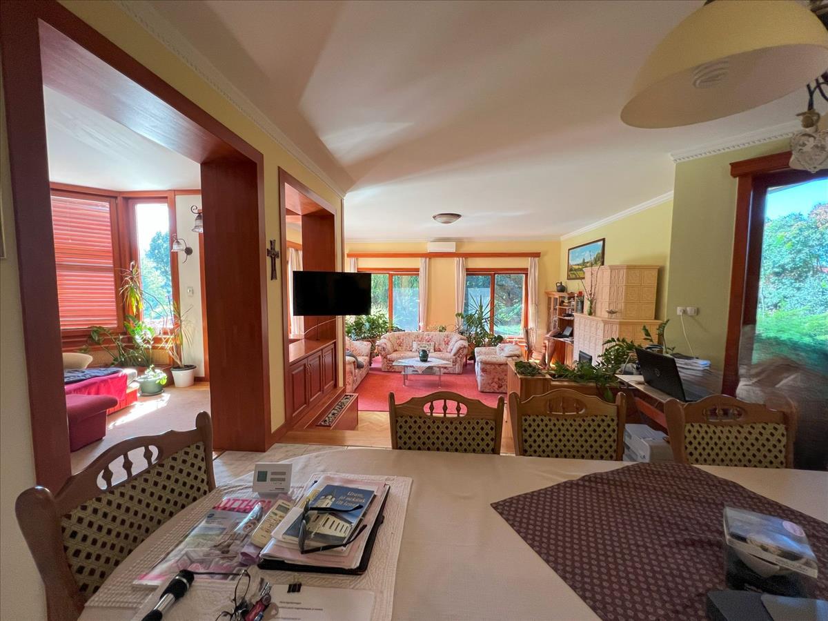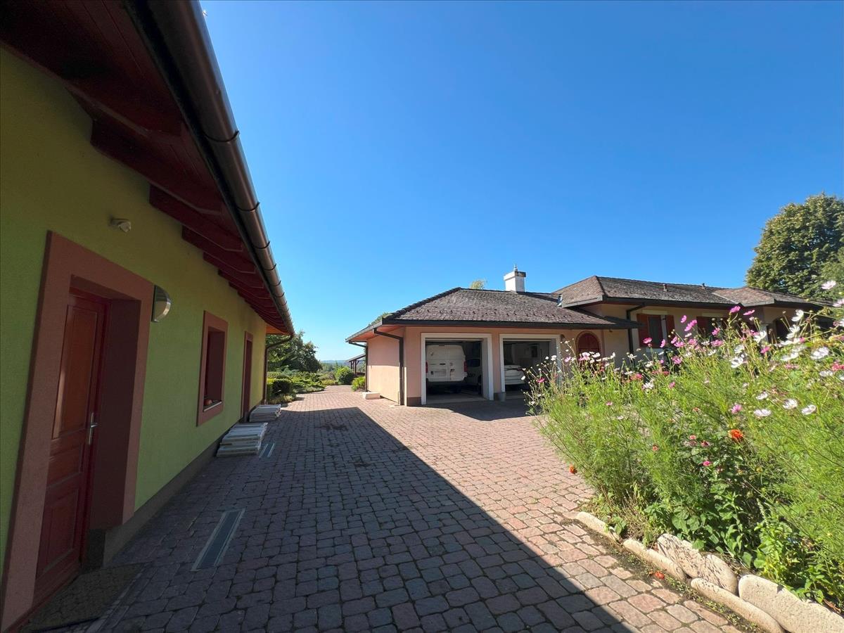Az ingatlan jellemzői: a főépület a kilencvenes évek elején épült téglából, masszív betonfödémmel és cseréptetővel, amely beépíthető tetőtérrel további bővítési lehetőséget kínál. a 190 négyzetméteres otthon központi tere a tágas, déli tájolású nappali hatalmas üvegfelületekkel, amely közvetlen kapcsolatban áll a nagy terasszal, ahonnan a kert panorámája tárul elénk. a nappaliból egy szinteltolással nyíló konyha, hálószobák, gardrób és fürdőszobák érhetők el, a fürdő egyik különlegessége egy infraszauna. Az épület 10 cm homlokzati és 40 cm födém hőszigeteléssel rendelkezik, valamint fa nyílászárókkal dupla üvegezéssel van felszerelve.