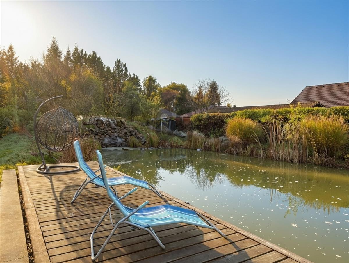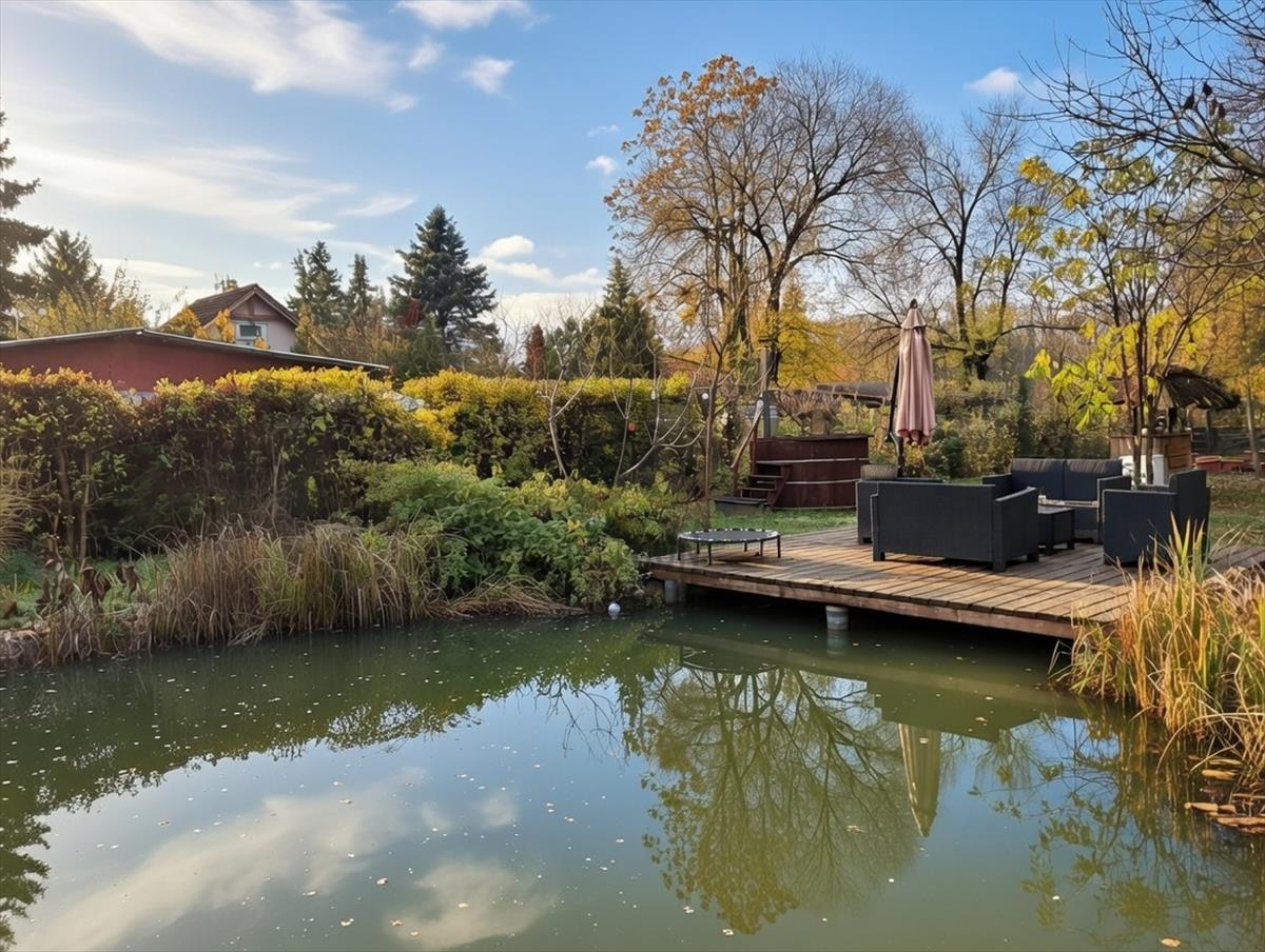 - Fürdésre és horgászatra is alkalmas kerti tó vízeséssel, sziklakerttel