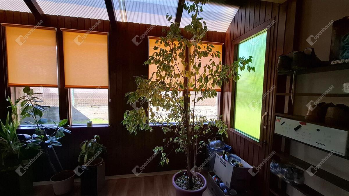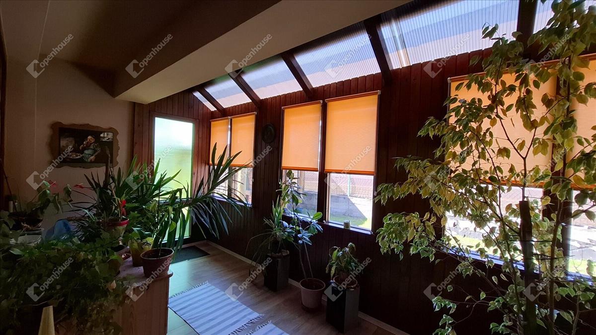 A ház főbejárata egy teraszon keresztül vezet, amely körbeüvegezett, részben polikarbonát tetős, rendkívül napfényes, hangulatos télikertté van kialakítva.