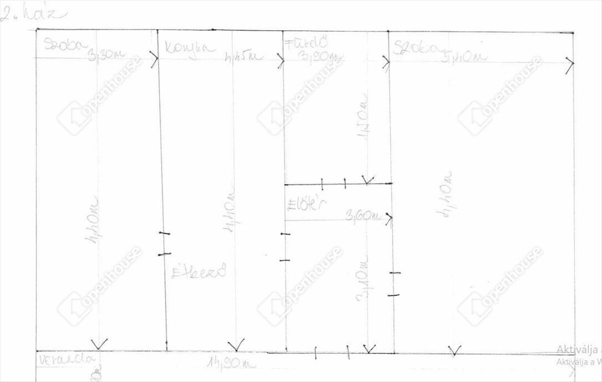 - fürdő (5, 8 m2) + hálószobák (14, 5 m2 +23, 7 m2)