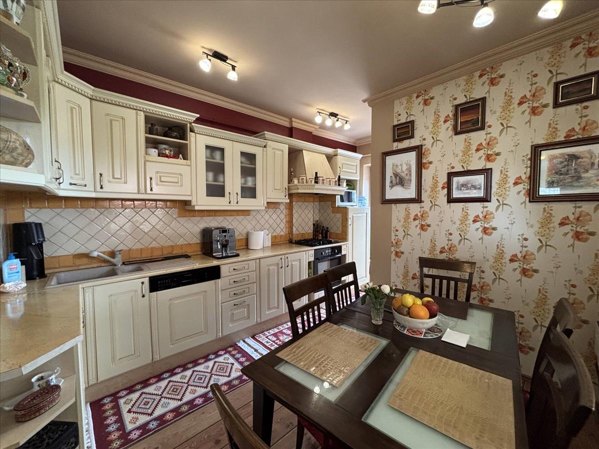 A hálószobákban hagyományos parketta található. a konyhának a beépített konyhabútor, illetve a hűtő, mosogatógép és mosógép is részét képezi.