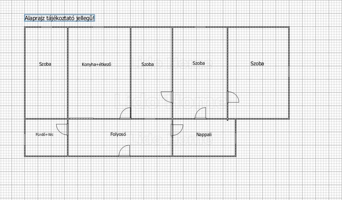 Az épületben összesen 4 hálószoba, nappali, fürdőszoba-wc, konyha, folyosó található.