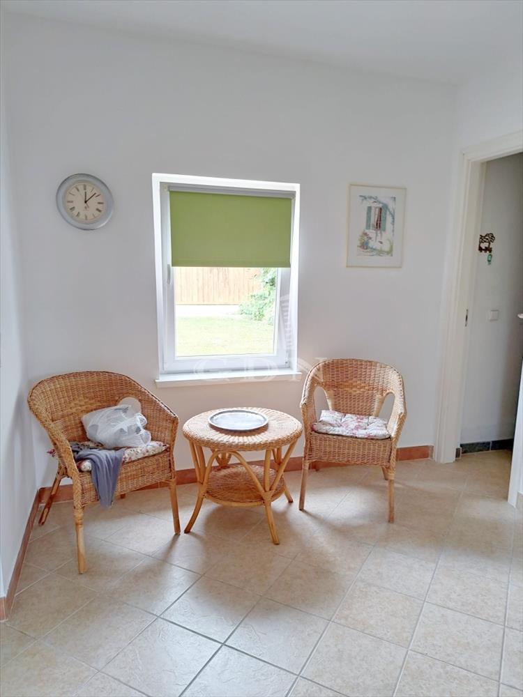 A földszinten fedett terasz, világos és tágas nappali, konyha étkezővel, egy hálószoba, fürdőszoba és külön wc található. Az emeleten további két hálószoba, nappali és egy extra fürdőszoba kapott helyet.