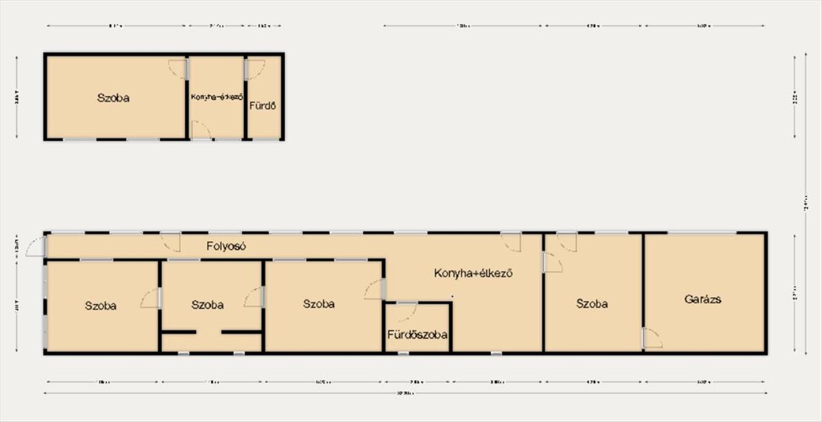 Az eladó családi ház egy nettó 132 nm alapterületű főépületből, valamint egy különálló, 40 nm-es kis házból áll, amely teljesen önálló lakhatásra alkalmas.